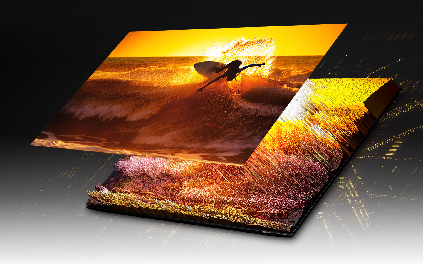 Výrobcovia televízorov v tomto roku stavili na technológiu priameho podsvietenia mini LED. Zatiaľ čo u konkurencie ide o nižšie rady televízorov v ponuke, umiestnené pod vrcholovými modelmi OLED, pre Samsung je technológia QLED špička a tomu zodpovedá aj jeho prístup. Nové vrcholové modely, medzi ktoré patrí aj testovaný QE65QN95A, využívajú najnovšiu technológiu zobrazovača, nazývanú Neo QLED. Tá pozostáva z panela Quantum Dot najnovšej generácie s priamym podsvietením Quantum Matrix pomocou mini LED. Tie sú podstatne menšie ako mini LED konkurencie a umožňujú tak použitie podstatne väčšieho množstva mini LED v podsvietení. Na rozdiel od konvenčného priameho LED podsvietenia LED diódy nepoužívajú žiadne šošovky a nie sú umiestnené v obale. Sú integrované v mikrovrstve, ktorá je aj bližšie k panelu Quantum Dot. Vďaka tomu je zabezpečené, aby ich svetlo nepresvitalo do okolia, čím sa dosahuje vysoká ostrosť a dynamický rozsah obrazu. Nová technológia odstraňuje alebo v maximálnej miere potláča presvitanie do okolia a zabezpečuje tak aj v kontrastných častiach obrazu minimálne pretekanie svetelných hrán a veľmi presné podsvietenie s vysokou mierou detailov. Televízor vďaka tomu dokáže zobraziť hlbokú čiernu rovnako ako jemné odtiene v najvyšších jasoch. Prispieva k tomu aj nový engine Neo Quantum Processor 4K, ktorý zabezpečuje až 12-bitové interné spracovanie obrazu a dodáva tak presné informácie aj pre podsvietenie, takže rozlišuje až 4096 úrovní podsvietenia. Ďalší faktor na zlepšenie obrazu je umelá inteligencia. Tú obsahovali už minuloročné modely, ale Machine Learning Super Resolution (MLSR) využívala výhody iba jednej neurónovej siete na analýzu a komplexné spracovanie obrazu. Nové modely televízorov Neo QLED používajú až 16 modelov neurónových sietí. Každý z nich sa špecializuje na vlastnú kategóriu, ktorá rozširuje jeho schopnosť obnovovať obsah, ako napr. rozlíšenie, hrany, detaily, snímkovú frekvenciu a hladinu šumu. Modul Neural analyzátora potom vyberá, ktorá neurónová sieť je na daný typ obsahu najvhodnejšia. Pri kvalitnejšom vstupnom obsahu sa algoritmy obnovy obrazu zameriavajú na jas a textúru okrajov, zatiaľ čo pri obsahu s nižšou kvalitou sa systém orientuje na zníženie rozmazania a šumu pri zvýšení čistoty. Výsledkom týchto procesov je naozaj excelentný obraz hlavne pri upsamplingu z full HD rozlíšenia. Pri SD formátoch veľmi záleží na vstupnej kvalite.
