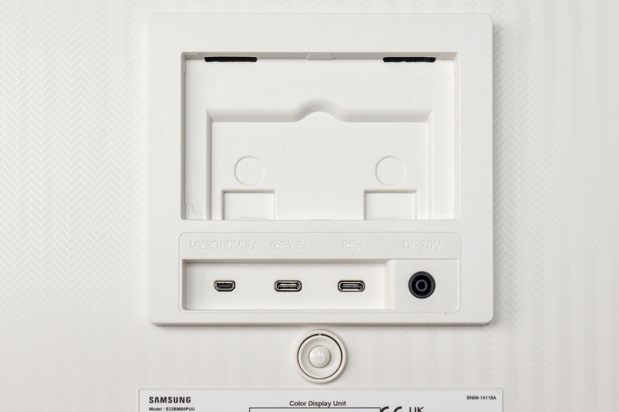 Testoval som model s označením S32BM80PUU vo farebnej variante Sunset Pink. V balení bolo diaľkové ovládanie, ktoré sa nabíja cez USB-C port a kamera SlimFit, ktorá sa dá magneticky prichytiť o zadnú stenu monitora, kde je aj konektor, taktiež magnetický a kompatibilný s USB-C na prenos signálu a napájania kamery.