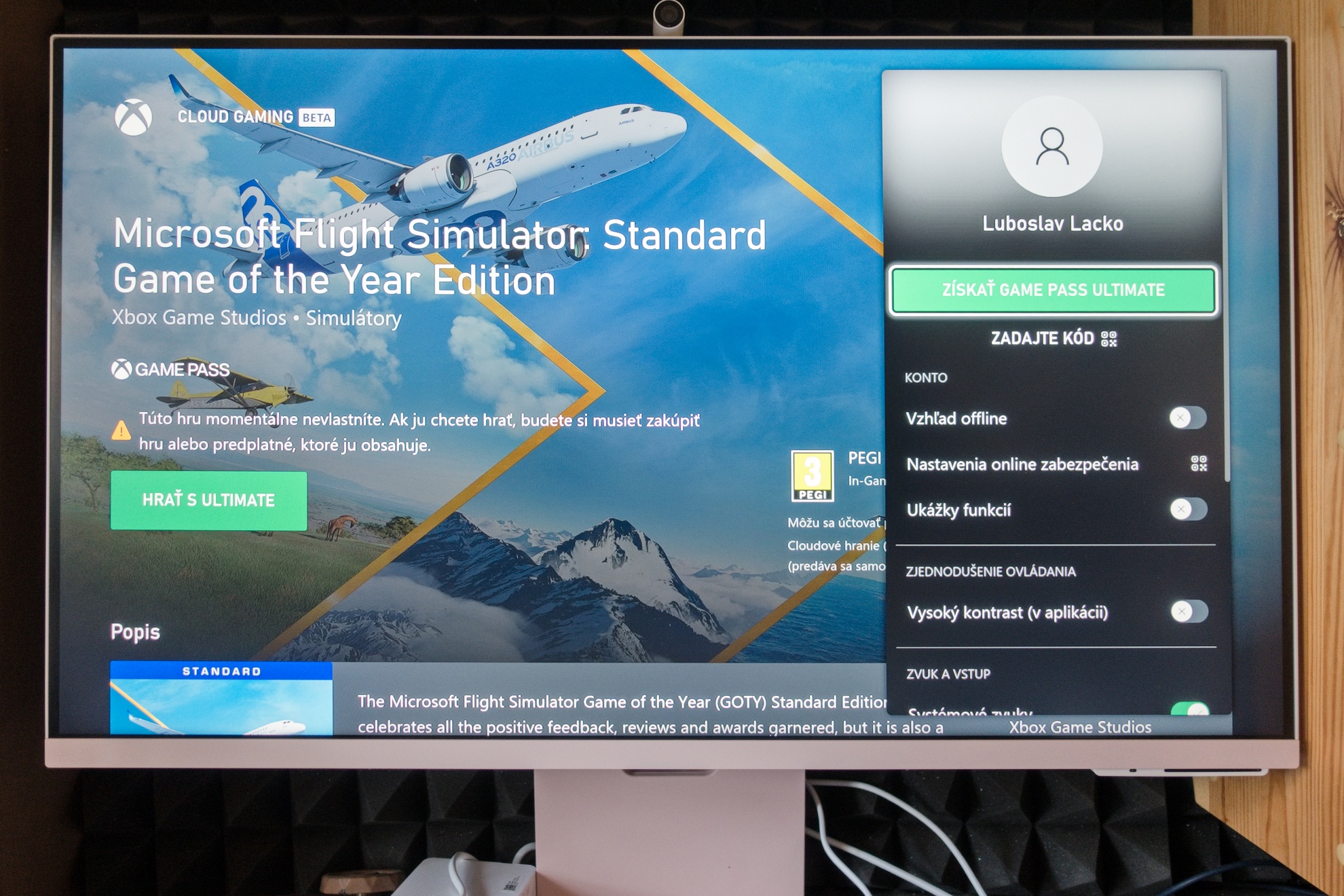Veľmi som bol zvedavý na aplikáciu Xbox, ktorá umožňuje hrať hry určené pre herné konzoly Xbox priamo na monitore, takže konzolu nepotrebujete. Hrať môžete len hry, ktoré sú súčasťou predplatného game Pass, napríklad Halo Infinite, Forza Horizon 5 alebo Microsoft Flight Simulator. Platí to doslova. Všetky tri spomínané hry som si v Xbox Store kúpil, takže ich vlastním a občas hrávam na Xboxe a hernom PC. S týmito tromi hrami si pri testovaní herných PC vystačím, takže Game pass predplatený nemám. Preto ma prekvapilo, že napriek tomu, že tieto hry preukázateľne vlastním, na smart monitoroch ani televízoroch Samsung modelovej rady 2022 sa ich nezahrám. Len hry, ktoré sú súčasťou predplatného Game Pass taktiež znamená, že sa nezahráte ani hry, ktoré sú zdarma. Pre Xbox Store som v rámci školiacich aktivít vytvoril vlastnú hru Flappy Chicken Adventure, čo je adaptácia logickej hry z éry osembitových počítačov. Ani túto hru som si na monitore bez konzoly nezahral.