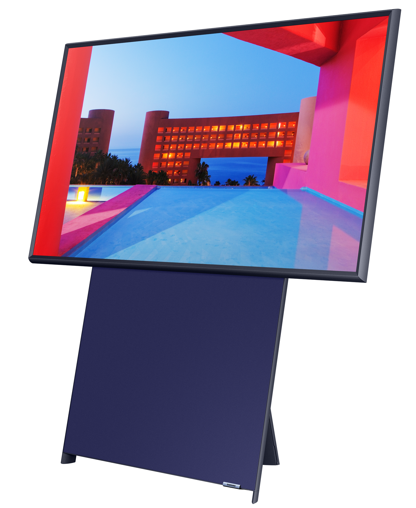 Televízor má uhlopriečku 43 palcov, ktorá je jediná, akú môžete mať, a je koncipovaný tak, že stojí priamo na zemi. Celý prístroj vyzerá zboku ako reklamný stojan typu A, zo zadnej strany má mohutnú nohu, ktorá ho podopiera. Keďže sa prístroj svojou koncepciou hodí aj ako prezentačný displej do firiem, možno k nemu dokúpiť kolieska, pomocou ktorých sa dá jednoduchšie presúvať. Vo vypnutom stave je displej vždy vo vertikálnej polohe. Do horizontálnej polohy ho môžete otočiť buď pomocou diaľkového ovládača, alebo ak k nemu máte pripojený smartfón. Potom stačí iba otočiť smartfónom a prístroj bude kopírovať jeho polohu. Otáčanie displeja však funguje iba na jednu stranu a má iba dve polohy – horizontálnu a vertikálnu. Nezáleží teda na tom, na ktorú stranu budete otáčať smartfón. K televízoru sa dodáva inteligentný diaľkový ovládač, ktorý Samsung využíva v podstate pri všetkých svojich modeloch. Tu je však osadený navyše ďalším tlačidlom, ktoré má na starosti práve otáčanie displeja.