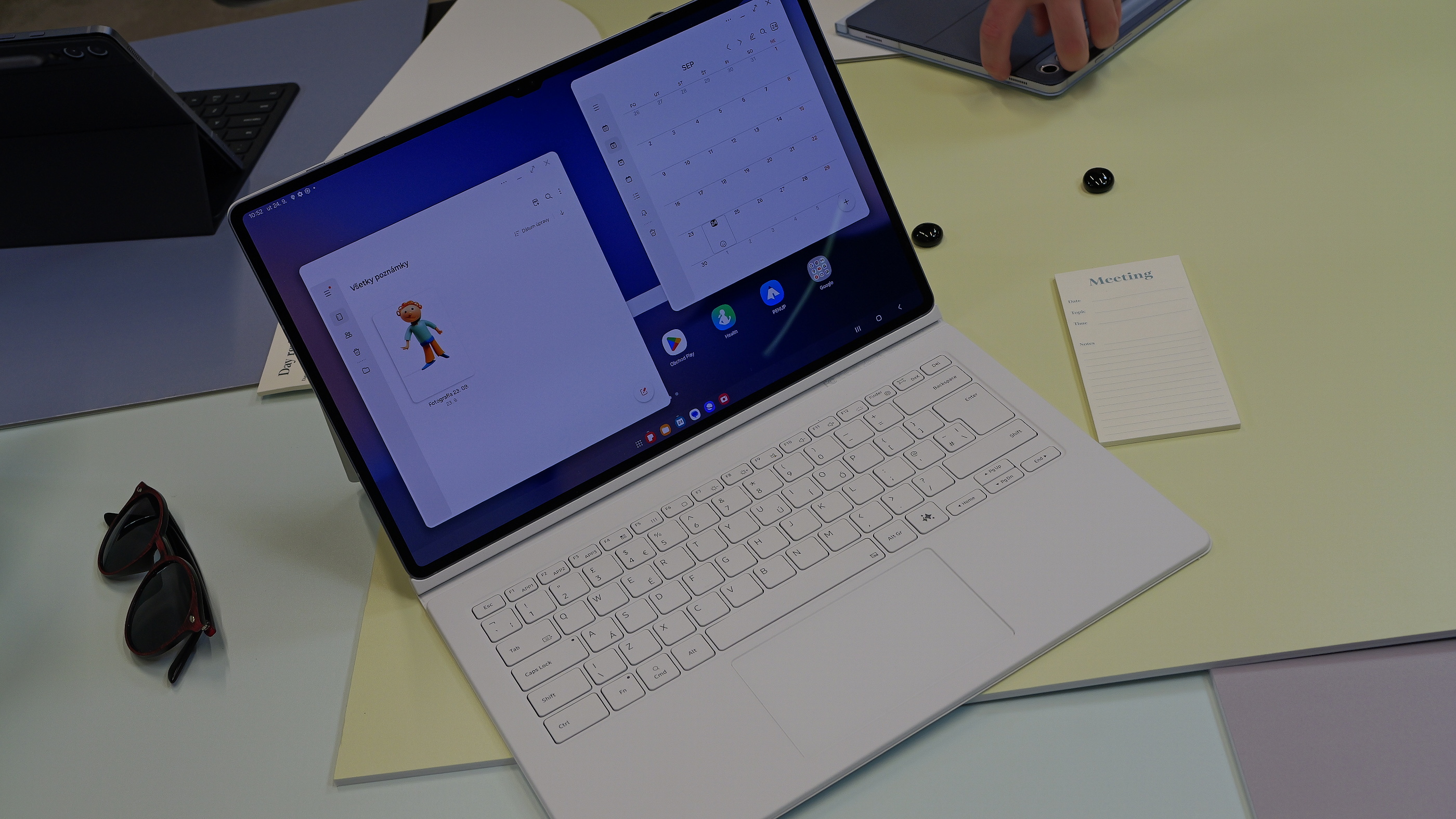 Galaxy Tab S10+ ponúka 12,4-palcový displej AMOLED s jasom 1200 nitov, čo zaručuje ostrý obraz aj pri silnom slnečnom svetle. Tablet je poháňaný procesorom MediaTek MT6989, ktorý je o 30 % rýchlejší ako jeho predchodcovia. To zaisťuje lepšie chladenie a dlhšiu výdrž batérie, ideálnu na náročné úlohy a dlhodobé používanie. Funkcie AI, ako je asistent na poznámky, prepisy, preklady a inteligentné vyhľadávanie, zlepšujú efektivitu práce a umožňujú rýchle spracovanie informácií. Pero S Pen, ktoré je súčasťou balenia, prináša ďalšie možnosti kreativity s podporou umelej inteligencie, umožňujúcou premeniť jednoduché kresby alebo skice na profesionálne obrázky priamo na obrazovke tabletu. Dizajn zariadenia je elegantný a štíhly, s hrúbkou len 5,4 mm, čo zabezpečuje vysokú mobilitu a odolnosť proti poškriabaniu. Cena Galaxy Tab S10+ sa začína na 1119 € za verziu s 256 GB úložiskom a pripojením Wi-Fi, pričom 5G verzia je k dispozícii za 1269 €.
