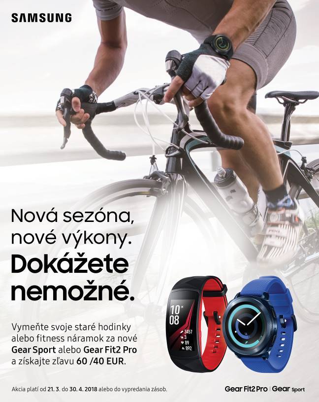 Stačí, ak prinesú akékoľvek staré náramkové hodinky do predajne Samsung (v Bratislave, Banskej Bystrici alebo Košiciach) alebo predajne Alza a získajú okamžitú zľavu až 60 eur na športové hodinky Gear Sport a 40 eur na náramok Gear Fit2 Pro.