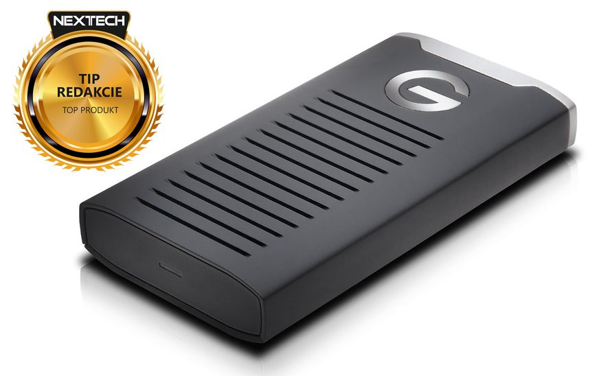 Zariadenie prichádza so zaujímavým funkčným dizajnom. Elektronika je z oboch strán obložená hliníkovými chladičmi a celé je to uložené v plastovom pogumovanom puzdre s rebrovaním na odvod tepla. Z jednej strany je strieborná príruba, v ktorej je konektor USB-C, z druhej strany biela LED dióda na indikáciu činnosti. Na vrchnej strane je veľké strieborné G označujúce príslušnosť k radu G Drive. Ako už názov napovedá, ide o profesionálne riešenie, takže odolnosť tu nie je iba ako marketingový ťahák, ale ako skutočná vlastnosť disku. Ten má certifikáciu odolnosti proti prachu a vode IP67, vydrží pád na tvrdú podložku z výšky troch metrov a je odolný proti poškodeniu pri tlaku až 907 kg. Neublíži mu teda ani náhodné prejdenie autom. Disk tak ocenia cestovatelia, kameramani, fotografi a všetci, ktorí potrebujú pracovať s veľkými objemami dát aj v teréne. Tam však zväčša nie je času nazvyš, a tak je dôležitá aj rýchlosť disku. Tu si novinka počína s prehľadom a v teste AS SSD dosiahol disk rýchlosť čítania 971 MB/s a zápisu dokonca 912 MB/s. Otestoval som ho aj s kamerou Panasonic Lumix DC-GH6. Tá totiž po najnovšej aktualizácii umožňuje záznam videa 5,7K30p v kodeku Apple ProRes HQ s dátovým tokom 1,9 Gb/s (237 MB/s) priamo na externý disk SSD cez USB-C. Môže sa zdať, že pre disk to nie je taký problém, ide však o to, že túto rýchlosť musí udržať po celý čas záznamu, teda napríklad 1 hodinu a 10 minút (to je dĺžka záznamu, ktorý sa zmestí na 1 TB SSD pri uvedených parametroch). Disk si s týmto testom poradil bez najmenších problémov a nebolo preň problémom ani spracovanie natočeného materiálu do formátu DCI 4K v programe DaVinci Studio 17 priamo z pripojeného disku k PC. Celá práca vrátane živých náhľadov časovej osi prebiehala bez akýchkoľvek problémov. Takéto riešenie je pre tvorcov zaujímavé tým, že projekt si môžu rozpracovať ešte v teréne a potom ho priamo z SSD otvoriť doma na výkonnom PC a dorobiť. K disku G-Drive SSD možno stiahnuť aj softvér pre 256-bitové hardvérové šifrovanie AES-XTS3 s podporou hesla, ktoré pomáha chrániť vaše súbory, videá a fotografie pred neoprávneným prístupom. Disk je hardvérovo vybavený na používanie tohto šifrovania.