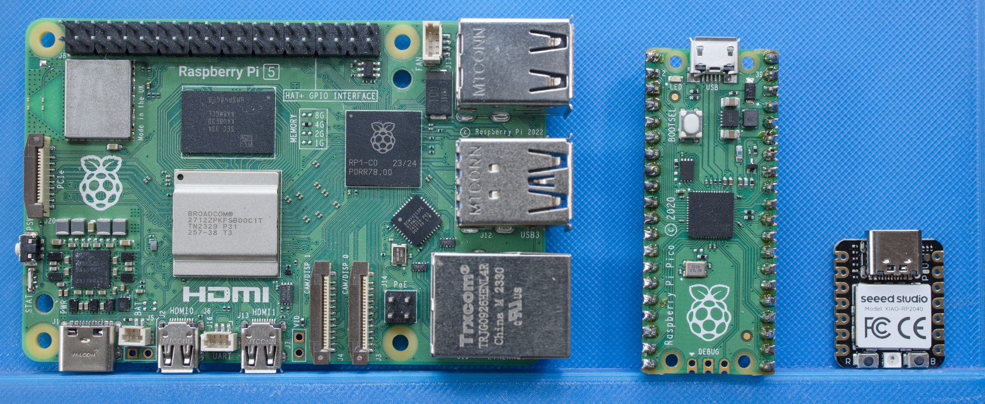 Porovnanie veľkosti raspberry Pi 5.0, Raspberry Pi Pico a Xiao-RF2040