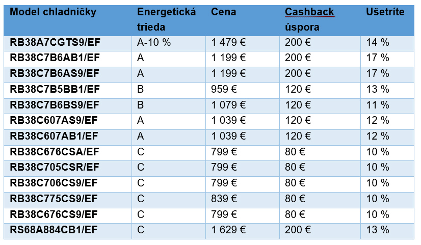 Nové chladničky s umelou inteligenciou Bespoke vám vďaka režimu AI Energy postrážia a ušetria energie, vy teraz môžete ušetriť na nich. Cashback na jednotlivé produkty je od 80 do 200 €. Na vybraných modeloch RB38C7B6AB1/EF a RB38C7B6AS9/EF, ktoré navyše získali ocenenie v nezávislom DTeste, ušetria zákazníci až 17 %.