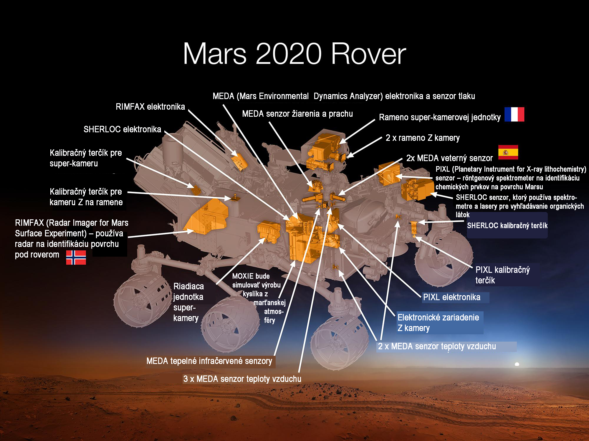 K pojazdnému laboratóriu Curiosity sa pridal jeho dvojník, rover Perseverance. Bude hľadať stopy dávneho mikrobiálneho života na Marse a uskutoční niekoľko unikátnych experimentov. Pri konštrukcii oboch robotov sa uplatnili digitálne riešenia spoločnosti Siemens. Pojazdný robot Perseverance (Vytrvalosť) pristál v kráteri Jezero a bezchybne zvládol najriskantnejšiu operáciu celej misie. Dostať na marťanský povrch náklad s hmotnosťou menšieho osobného automobilu je mimoriadne náročná operácia. Agentúra NASA preto opäť zvolila technológiu „nebeského žeriavu“ (Sky Crane), lietajúcej konštrukcie s raketovými motormi, ktorá sa po zbrzdení padákom zniesla s roverom nad cieľovú oblasť a na vhodnom mieste ho opatrne položila na kolesá. Snímka, ktorá má šancu zaradiť sa medzi kultové fotografie kozmonautiky. Rover Perseverance visí z „nebeského žeriavu“ dva metre nad povrchom dve sekundy pred dosadnutím. Takmer nezničiteľná Curiosity Dych berúci pristávací manéver sa osvedčil už v roku 20 ...Článok je uzamknutý