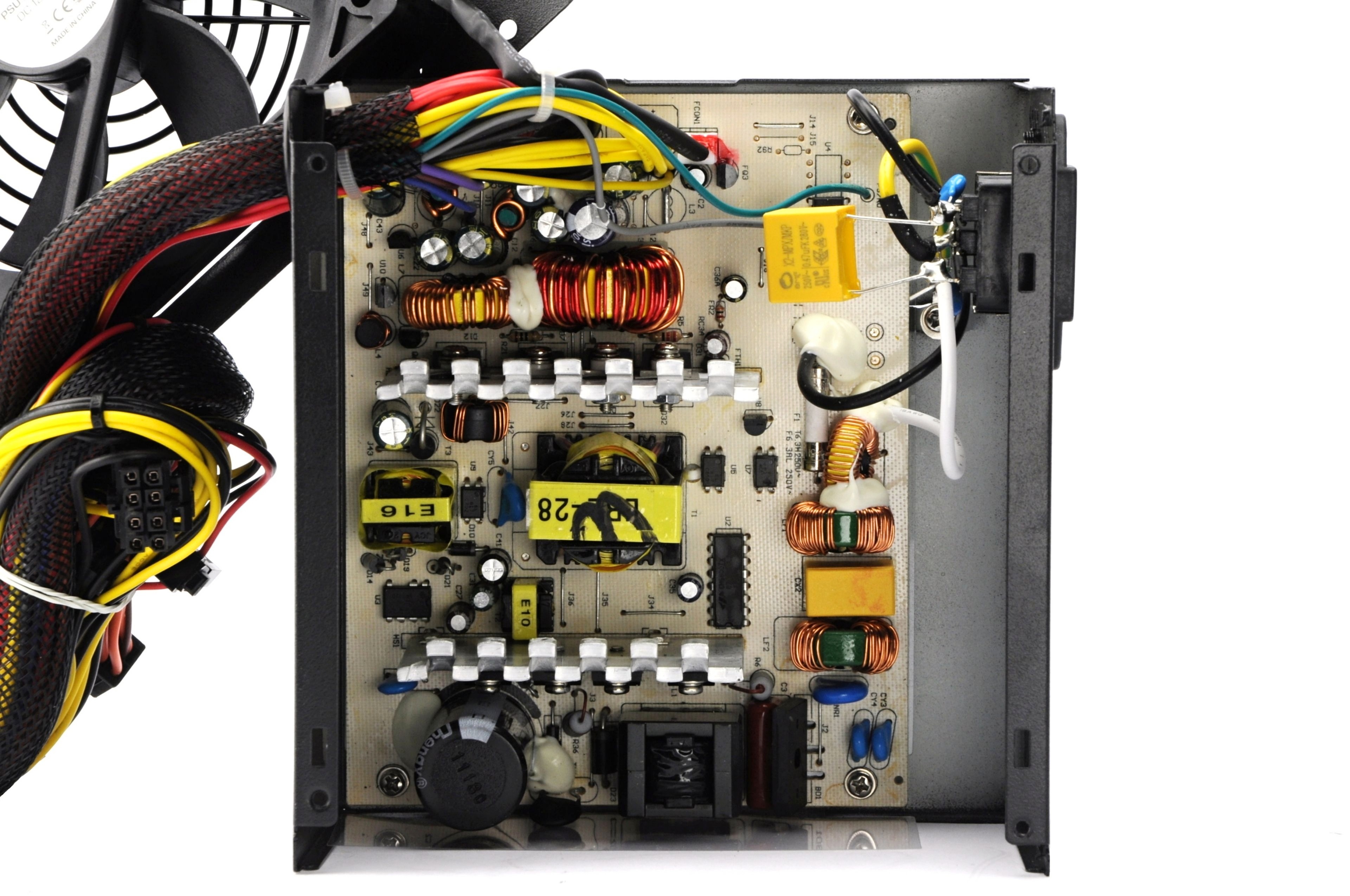 Primárna aj sekundárna časť sú osadené kondenzátormi Chengx, ktoré sú na kvalitatívnej stupnici od jednej po päť niekde uprostred. Často sa však v tejto cenovej triede používajú ešte horšie kondenzátory s kratšou životnosťou. Aby sa mohol zdroj predávať za čo najmenej, dodáva sa ako bulk, teda bez kartónovej škatule a neutrácalo sa ani za žiadne špeciality na obale zdroja. Šasi je úplne obyčajné, striekané na čierno, s výbornou špirálovitou mriežkou (kiežby bola vzorom i pre drahšie modely) pred ventilátorom. Pevnosť konštrukcie je veľmi solídna. V opletenej bužírke sú iba vodiče najmohutnejšieho 24-pinového konektora. Ostatné sa niekedy rozutekajú a zopár sťahovacích pások (k tým už predinštalovaným) ešte znesú. Kabeláž je inak pevná, neodpojiteľná. A oproti populárnemu Seasonicu SS-350ET je i dlhšia, pripravená i do súčasných skriniek, kde sa v drvivej väčšine prípadov EPS ťahá odspodu za základnou doskou až k procesorovému konektoru.Tento kábel tu však má až 620 mm, takže pohodlne dočiahne i v midi-toweroch. Na napájanie grafickej karty má zdroj jeden 6+2-pin a osamotený je i molex na spätnú kompatibilitu so staršími komponentmi. Konektorov SATA je až päť, takže o možnosť pripojenia viacerých diskov ukrátení nebudete.