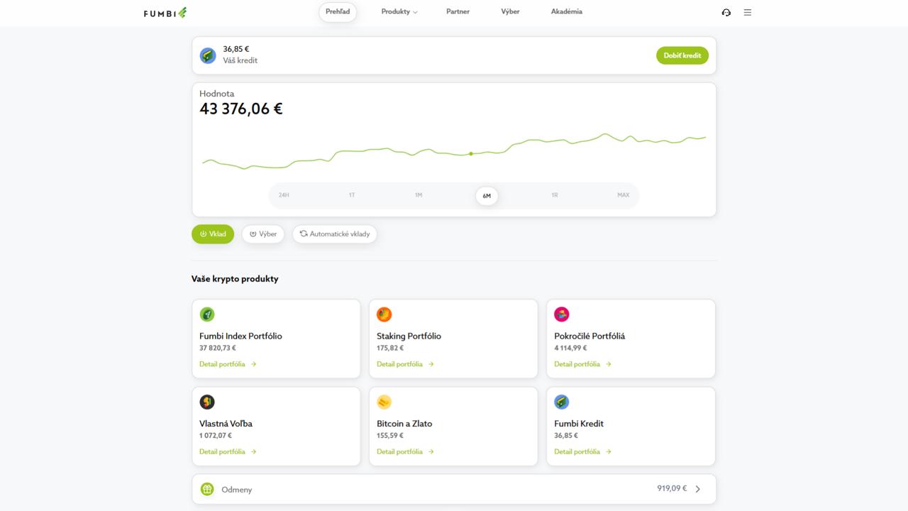 Slovenské Fumbi aktuálne ponúka viacero produktov. Základom je manažované Fumbi Index Portfólio, ktoré majoritne investuje do bitcoinu a etherea, obsahuje však aj ďalšie kryptomeny s nižšou trhovou kapitalizáciou. Investovať je možné už od 50 eur.
