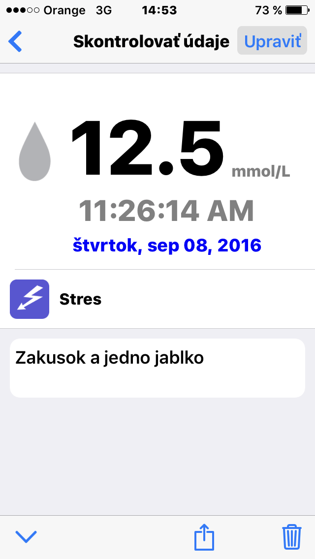 Pacienti s cukrovkou si musia pravidelne merať hladinu cukru v krvi. Namerané hodnoty využijú jednak na okamžitú korekciu, ale aj na vedenie záznamov pre potreby lekára. Pri nízkej nameranej hladine, napríklad ak príjem sacharidov v jedle nedosiahol predpokladanú hodnotu adekvátnu dávke inzulínu, stačí zjesť alebo vypiť niečo sladké a zabrániť tak hypo-glykemickému šoku ohrozujúcemu život. Vysoká hladina cukru zasa ohrozuje niektoré orgány, predovšetkým obličky.