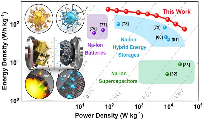 Kombinácia týchto materiálov v batériovom článku vytvorila vysokovýkonné hybridné sodíkovo-iónové zariadenie na ukladanie energie, ktoré prekonáva energetickú hustotu komerčných lítiovo-iónových batérií pri zachovaní hustoty výkonu superkondenzátorov. S hustotou energie 247 Wh/kg a hustotou výkonu 34 748 W/kg je zariadenie vhodné na aplikácie rýchleho nabíjania v elektrických vozidlách, inteligentných elektronických zariadeniach a leteckých technológiách.