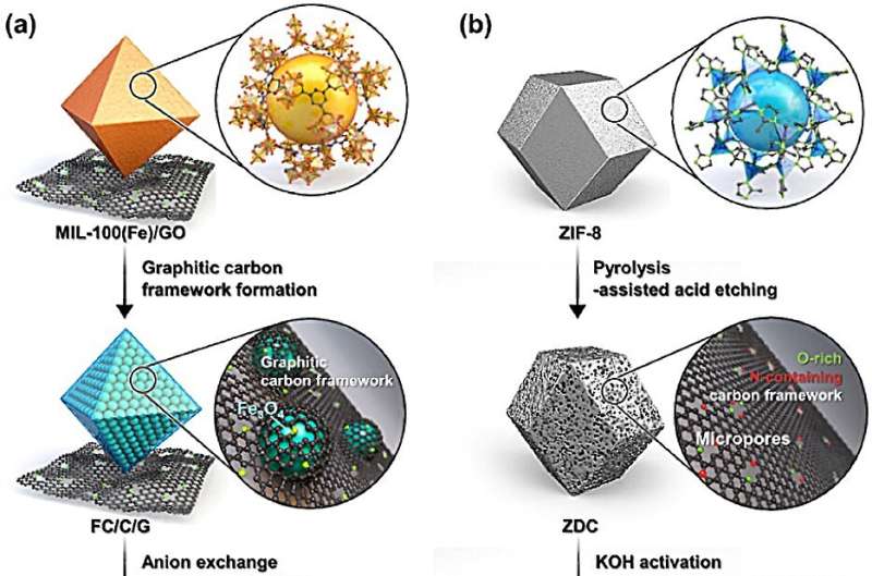 Výskumný tím integroval anódové materiály batérií s katódami superkondenzátorov, aby vytvoril hybridný systém skladovania energie, ktorý ponúka vysokú kapacitu skladovania aj vysokú rýchlosť nabíjania a vybíjania. Na dosiahnutie tohto cieľa využili dva odlišné kovovo-organické rámce na optimalizáciu syntézy hybridných batérií. Výsledkom bol anódový materiál so zlepšenou kinetikou a katódový materiál s vysokou kapacitou.
