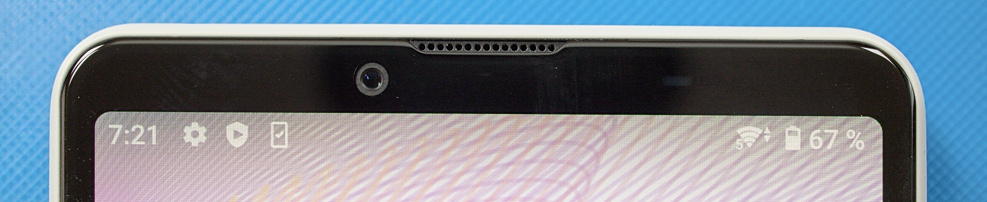 Displej s uhlopriečkou 6'' má pomer strán displeja 21:9, ktorý je optimálny nielen na sledovanie filmov, ale v polohe „na výšku“ aj na väčšinu iných klasických smartfónových aktivít. Dlhší displej pri orientácii na výšku znamená viac zobrazeného obsahu. Veľmi pozitívne hodnotím aj prezeranie, prípadne drobné korektúry dokumentov v režime na šírku, pretože široký displej zobrazí dostatočne široký výrez dokumentu. Displej na báze technológie OLED nemá výrez ani otvor, takže jeho kompaktnosť nie je ničím narušená, avšak má približne 5 mm širokú bradu a 6 mm čelo, v ktorom je otvor pre objektív selfie fotoaparátu, senzory priblíženia a okolitého svetla a taktiež notifikačná LED.