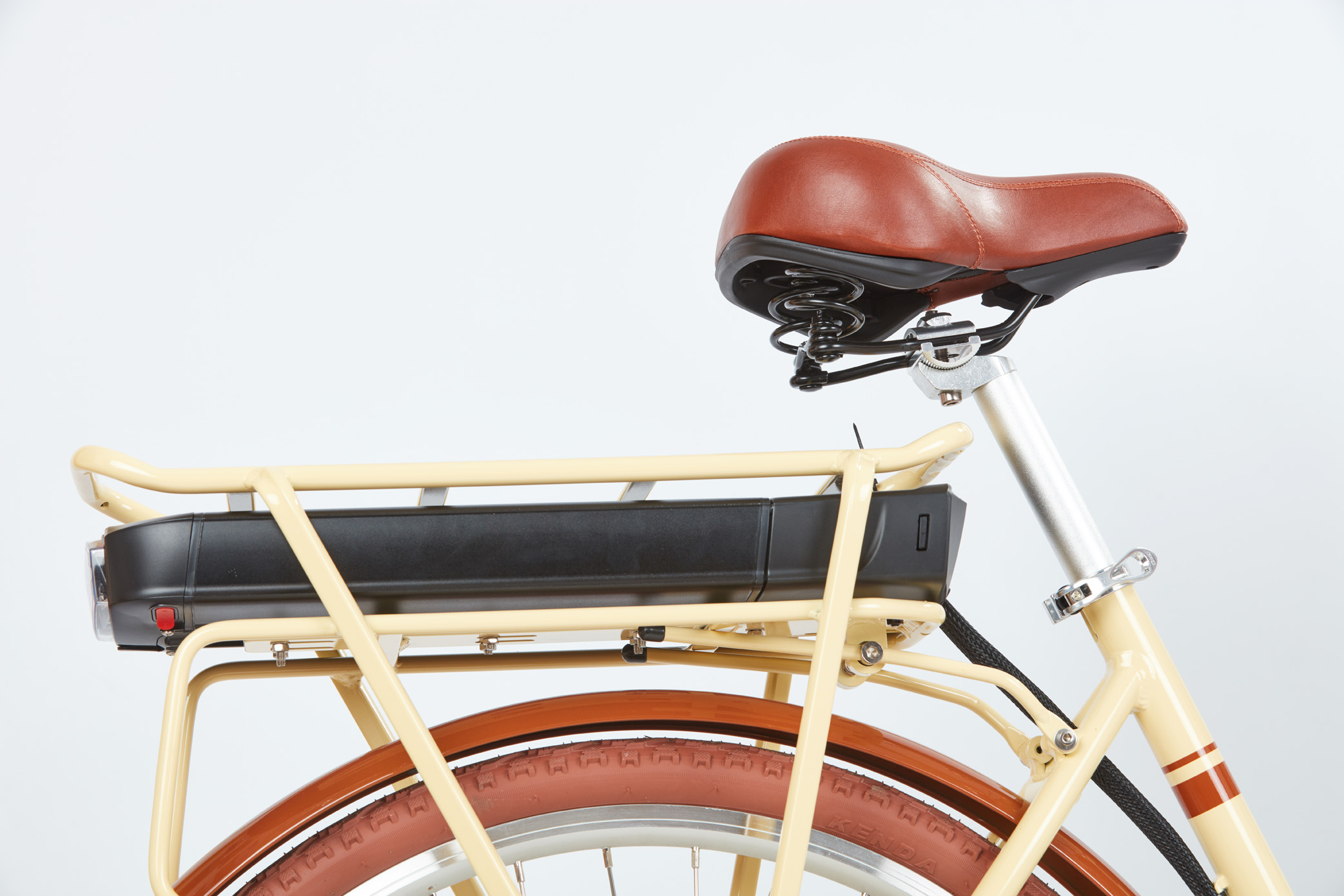» Sympatický ebajk českej značky Spiritbike s pútavým dizajnom v štýle retro je určený najmä do mestskej premávky, ale vhodný je aj na ľahšiu cykloturistiku mimo mesta. Nízky nástup, výškovo nastaviteľné riadidlá a širokú sedačku, ktorá poskytuje pohodlný posed s vystretým chrbtom, ocenia najmä ženy, ktorým nevyhovuje klasický rám a športový predklon. Batéria je netradične uložená na zadnom nosiči a elektromotor zase v prednom náboji, takže ho na prvý pohľad ani nezbadáte. Vďaka tomu vyzerá ako bežný bicykel. Teda až do momentu, kým nezapnete elektropohon, potom si ostatní cyklisti naokolo rozdiel určite všimnú. Zapnutie elektropohonu je jednoduché, treba však najprv zapnúť batériu, spínač je umiestnený na jej spodnej strane. Potom už len na riadidlách zapnete jedným tlačidlom elektropohon a môžete vyraziť.