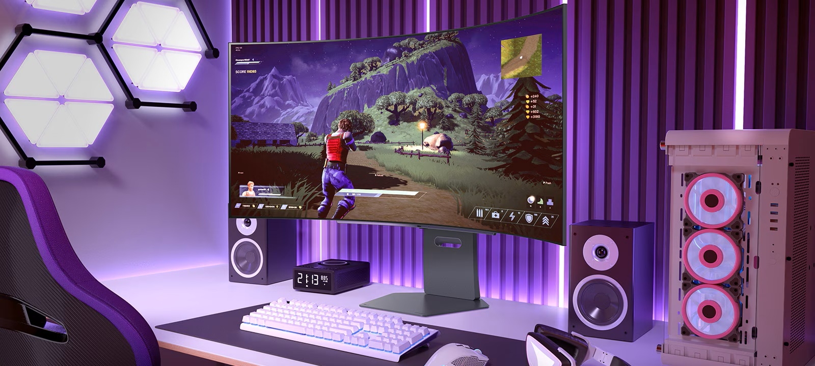 Tento nový 45-palcový zakrivený displej OLED s rozlíšením WQHD (3440 x 1440) a zakrivením 800R prináša pohlcujúci vizuálny zážitok. Vďaka vrstve proti odleskom AGLR a hustote pixelov 84 PPI je obraz ostrý a detailný. Prakticky bezokrajový štvorstranný dizajn maximalizuje zobrazovaciu plochu a moderný vzhľad.