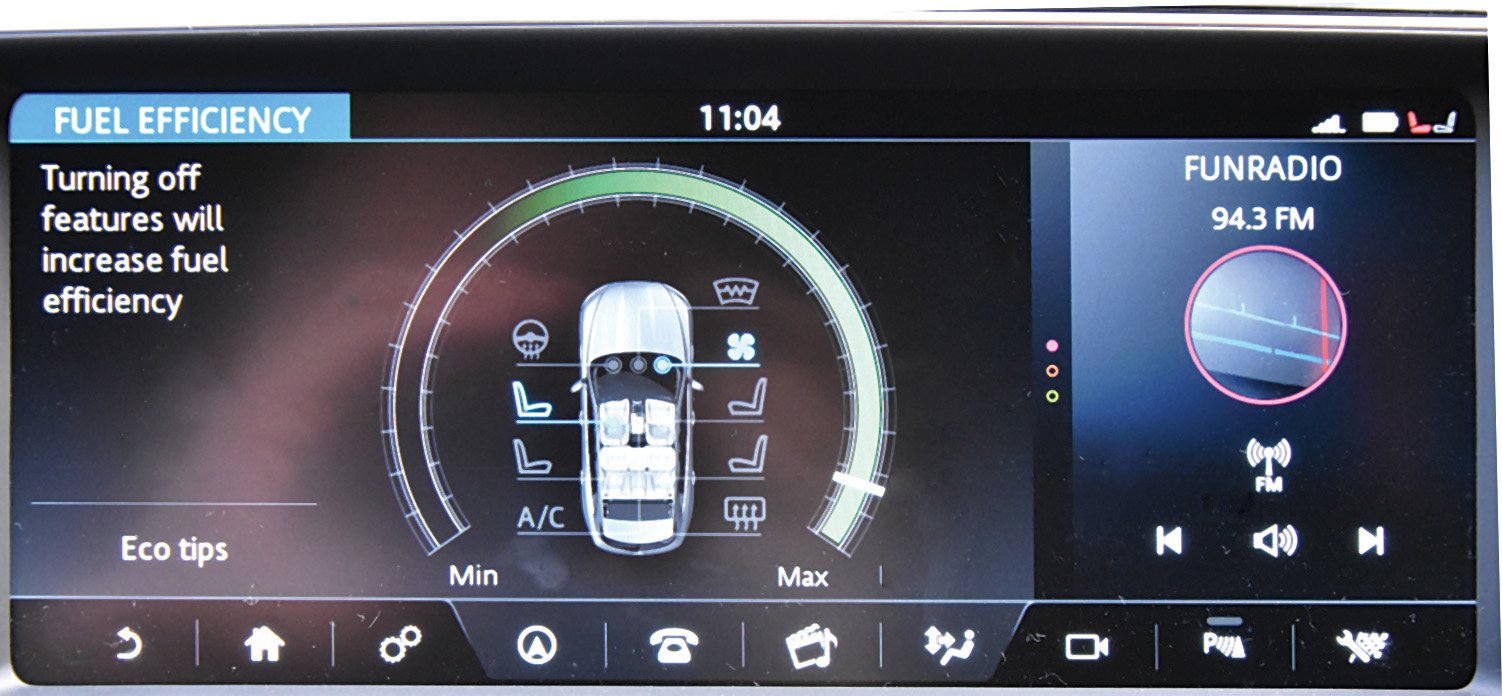 Z luxusných prvkov zaujme aj nastaviteľné náladové osvetlenie interiéru, kvalitný audiosystém Meridian s 11 reproduktormi (380 W), kožený, za príplatok aj vyhrievaný volant či elegantný výsuvný kruhový volič automatickej prevodovky.