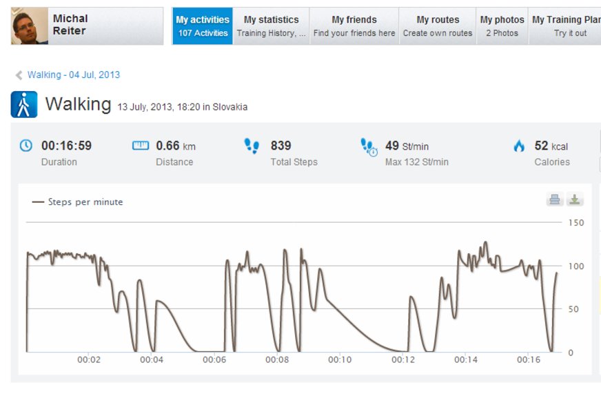 Zobrazenie štatistiky aktivity na webe Runtastic