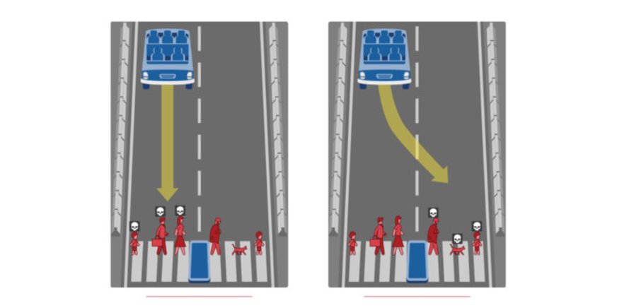 Simulácia pred vás kladie zaujímavé scenáre. Je ľudský život cennejší ako život zvieraťa? Zrazili by ste dvoch zločincov a dvoch nevinných ľudí alebo by ste nechali zomrieť vodiča a troch cestujúcich (všetkých nevinných)? Sú starí ľudia menej hodnotní ako mladí? Je ženský život cennejší ako mužský? Na tieto otázky neexistuje správna odpoveď, no môžu byť užitočné pri zisťovaní názorov ľudí na to, ako by vozidlá mali v takýchto situáciách reagovať.