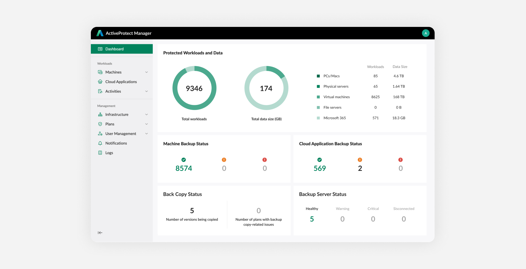 Active Protect Manager poskytuje prehľad o všetkých prebiehajúcich úlohách, informácie o tom, či všetky zálohovacie úlohy prebehli v poriadku alebo sa vyskytli nejaké problémy. Máte možnosť pridávať zariadenia, či cloudové služby, všetko v jednej komplexnej a prehľadnej aplikácii. Samozrejmosťou je kontrola prístupu, niektorí administrátori môžu mať právo len dáta obnovovať, iní môžu plány vytvárať a prípadne aplikovať. No a samozrejme všetky aktivity sa zapisujú do zabezpečených protokolov.