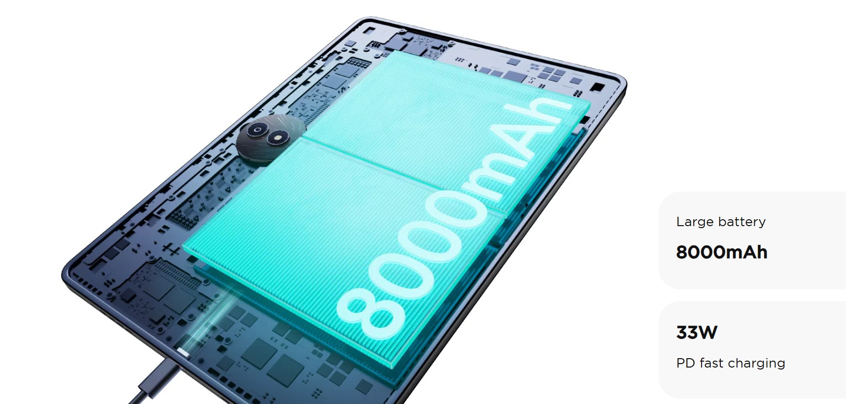 Elektronickým srdcom tabletu je čipová súprava MediaTek Helio G100, ktorá má k dispozícii 8 GB RAM. Výkon procesora, GPU aj kapacita RAM na bežné účely bohato stačia. Úložný priestor má kapacitu 256 GB, pamäťová karta nie je podporovaná.