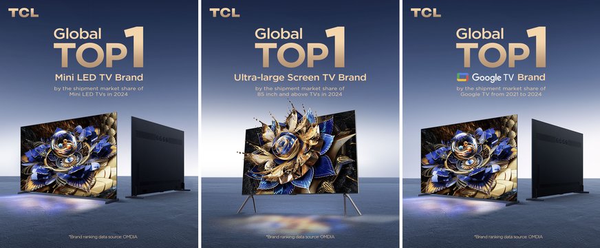 Podle nejnovějších údajů společnosti Omdia vedla TCL v roce 2024 globální dodávky televizorů o velikosti 85 palců a větších s 22,1% podílem na trhu. Zároveň si zajistila první místo v dodávkách Mini LED televizorů s podílem 28,8 % a od roku 2021 si stále drží celosvětové prvenství v dodávkách televizorů s Google TV.