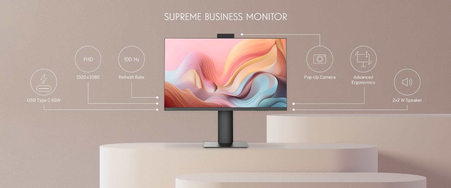 Kompletné all-in-one riešenie pre moderných profesionálov – tento 27-palcový IPS displej je vybavený výsuvnou kamerou pre bezproblémové videokonferencie a vstavanými reproduktormi pre čistý zvuk. Full HD rozlíšenie a jas 300 nitov zabezpečujú ostrý a živý obraz. Vďaka technológii HDR10, 110 % pokrytiu farebného priestoru sRGB a ergonomickému stojanu s možnosťou nastavenia výšky, náklonu a otáčania je tento monitor ideálnou voľbou pre virtuálne stretnutia, multitasking a kreatívnu prácu. Obnovovacia frekvencia 100 Hz a kompatibilita s technológiou Adaptive-Sync zabezpečujú plynulé zobrazenie bez trhania alebo sekania obrazu pri rýchlej akcii. Monitor ponúka všestranné možnosti pripojenia vrátane HDMI, USB-A, USB-B a audio vstupu, pričom USB-C s výkonom 65 W umožňuje nabíjanie zariadení, prenos dát aj videa – všetko cez jediný kábel.