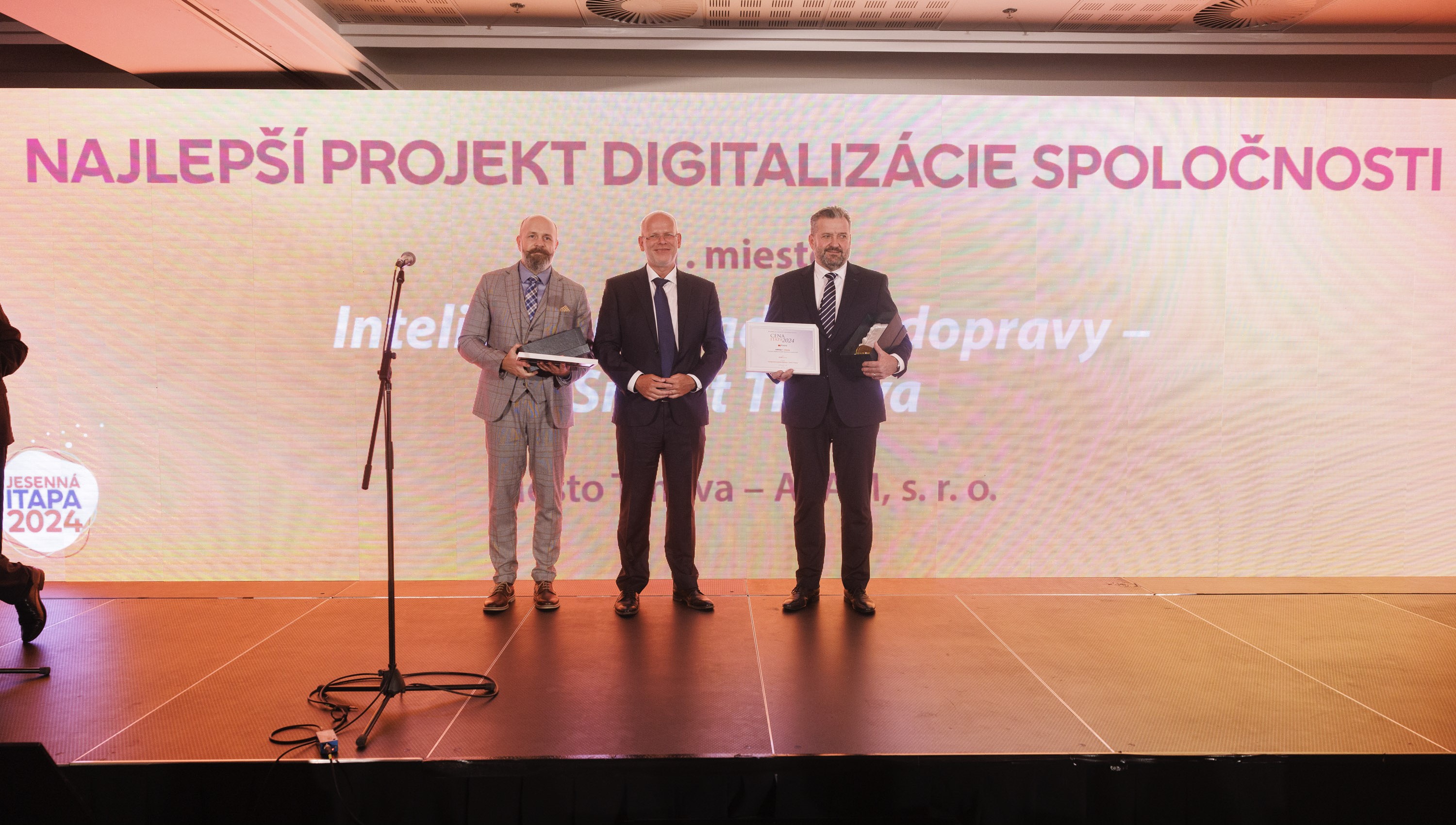 Prvé miesto v tejto kategórii si odniesol projekt „Inteligentné riadenie dopravy - Smart Trnava“, ktorý realizovalo mesto Trnava v spolupráci so spoločnosťou ALAM s.r.o. Projekt prináša revolučné nástroje na efektívne riadenie mestskej dopravy. Implementáciou pokročilých technológií, ako sú senzory a analytické systémy, zvyšuje bezpečnosť na cestách, zlepšuje plynulosť dopravy a znižuje negatívne dopady na životné prostredie. Tento projekt nie je len technickou inováciou, ale aj príkladom, ako môžu mestá proaktívne riešiť výzvy v oblasti mobility.