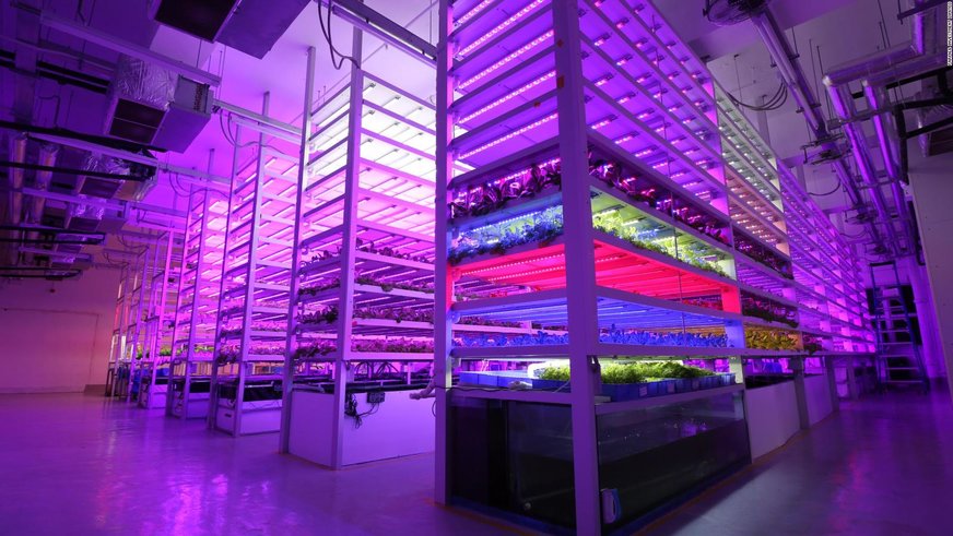 Hongkong je známy svojimi mrakodrapmi, a tak nie je prekvapujúce, že sa tam obrába len 0,6 % pôdy. Mesto v súčasnosti produkuje menej ako 2 % čerstvej zeleniny, ktorá sa tam konzumuje. Teraz však startup Farm66 začal pestovať rastliny na skladaných regáloch pod LED svetlami v priemyselnom sklade s rozlohou asi 1860 štvorcových metrov. Táto interiérová farma je chránená pred škodcami a znečistením, nepoužíva žiadnu pôdu a len minimum vody. Navyše kontrolované prostredie umožňuje spoločnosti riadiť tvar a veľkosť rastlín.