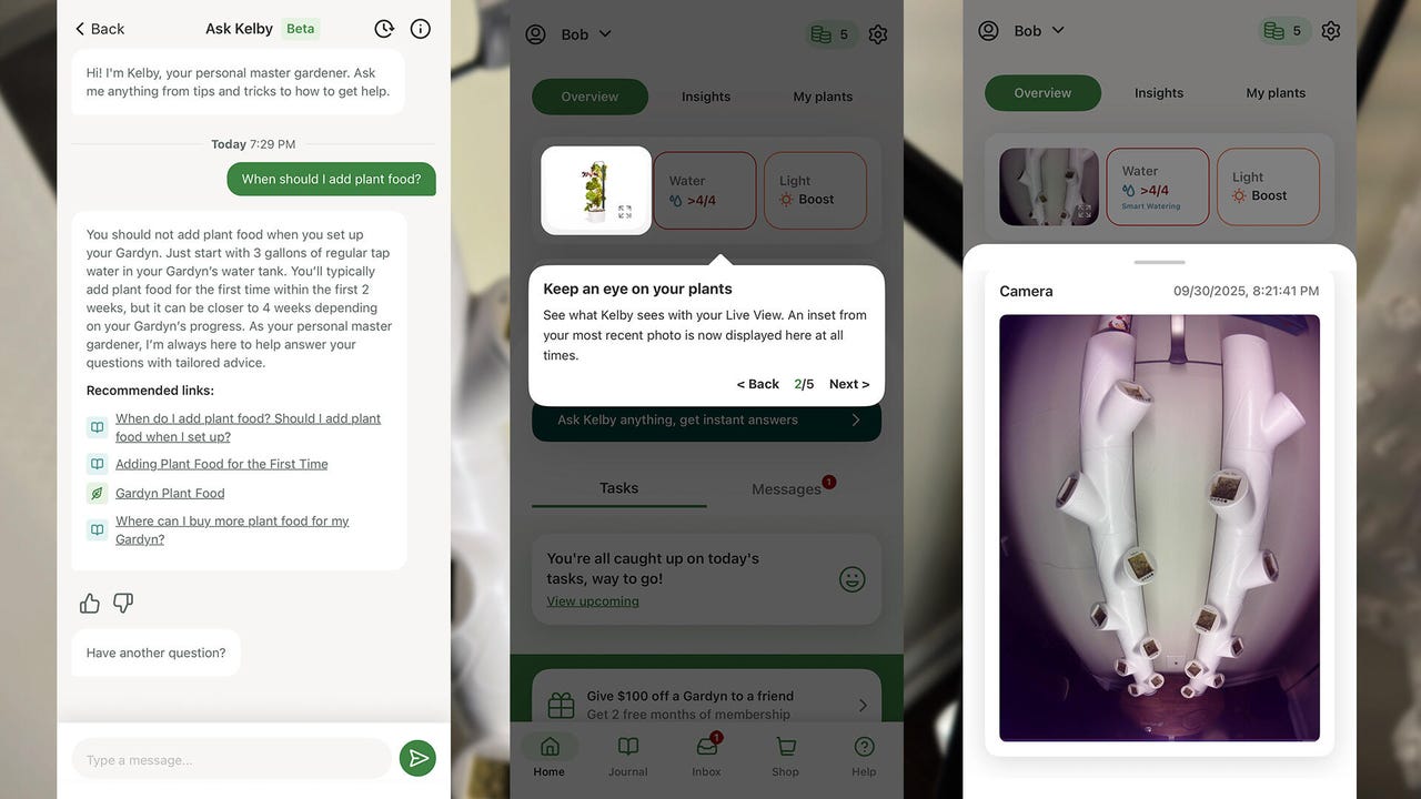 Umelá inteligencia Kelby potom analyzuje fotografie, kontroluje zdravie rastlín a poskytuje používateľovi cielené rady a odporúčania. Kelby vás upozorní, kedy je čas pridať vodu alebo živiny, a dokonca aj to, kedy sú vaše rastliny pripravené na zber.