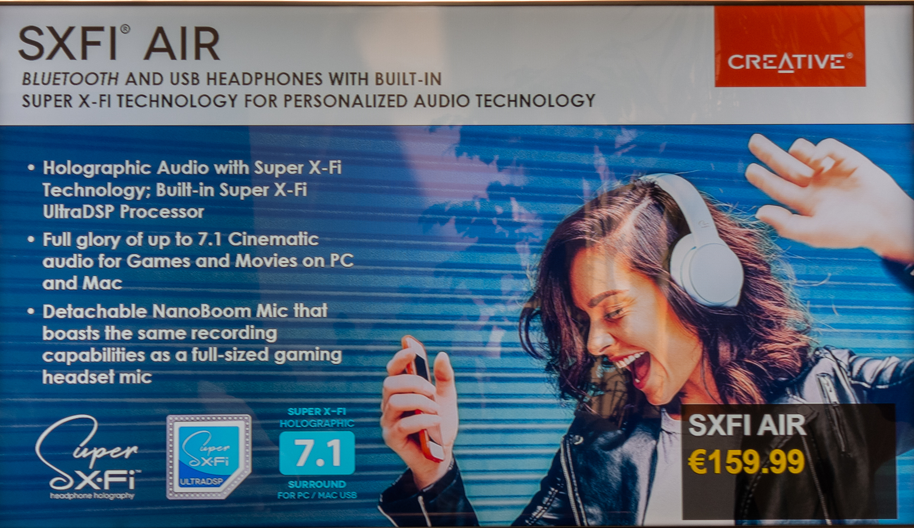 Spoločnosť Creative počas podujatia ASBIS Tech Fest 2019 predstavila svoju technológiu Super X-Fi založenú na holografii tváre a ucha. Tvorcovia hudobných nahrávok, aj rozhlasových dramatizácií ich mixujú tak, aby poskytli maximálny zážitok pri klasickom počúvaní cez dva stereofónne reproduktory. Ak takúto nahrávku počúvate cez slúchadlá, znie trochu inak.