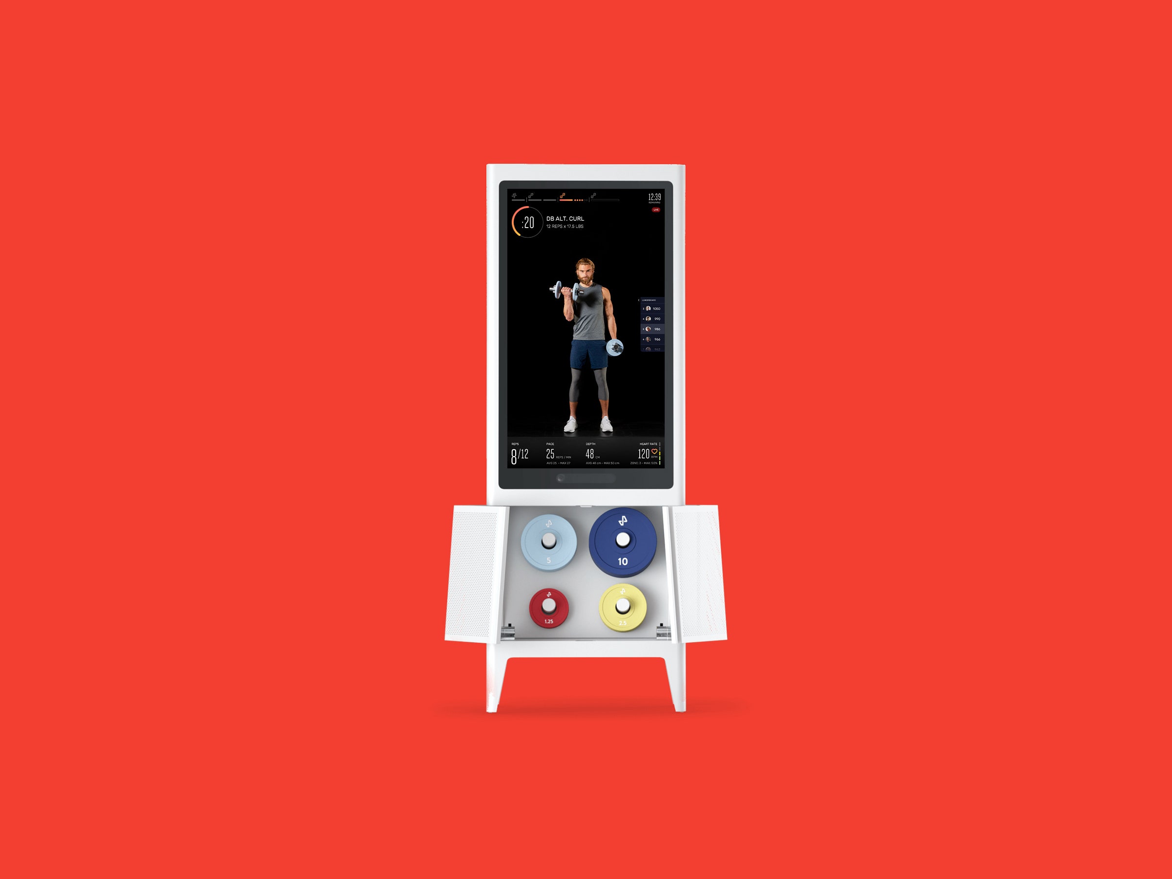 Pod obrazovkou je skrinka, kde sú zavesené závažia so 4 rôznymi hmotnosťami siahajúcimi od 0,5 do 4,5 kg. Na zadnej strane je posilňovacia lavica a dve diskrétne uložené činky. Medzi zadnou časťou dotykovej obrazovky a zadnou stenou je trojuholníkový otvor na uloženie snímača srdcovej činnosti a cvičebnej podložky či masážneho penového valca.