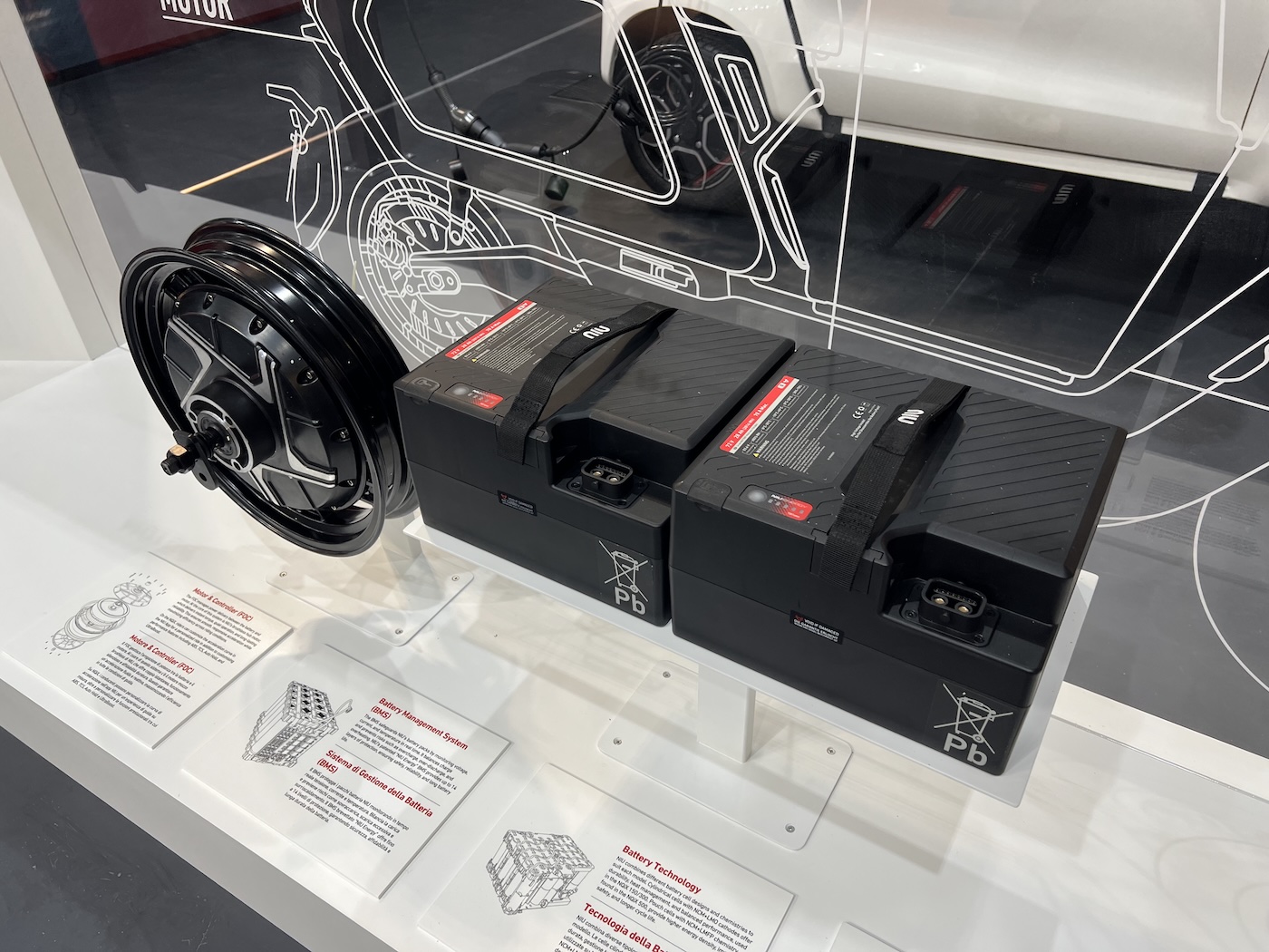 Používa vymeniteľné batérie, rovnaké ako v skútroch NQi.