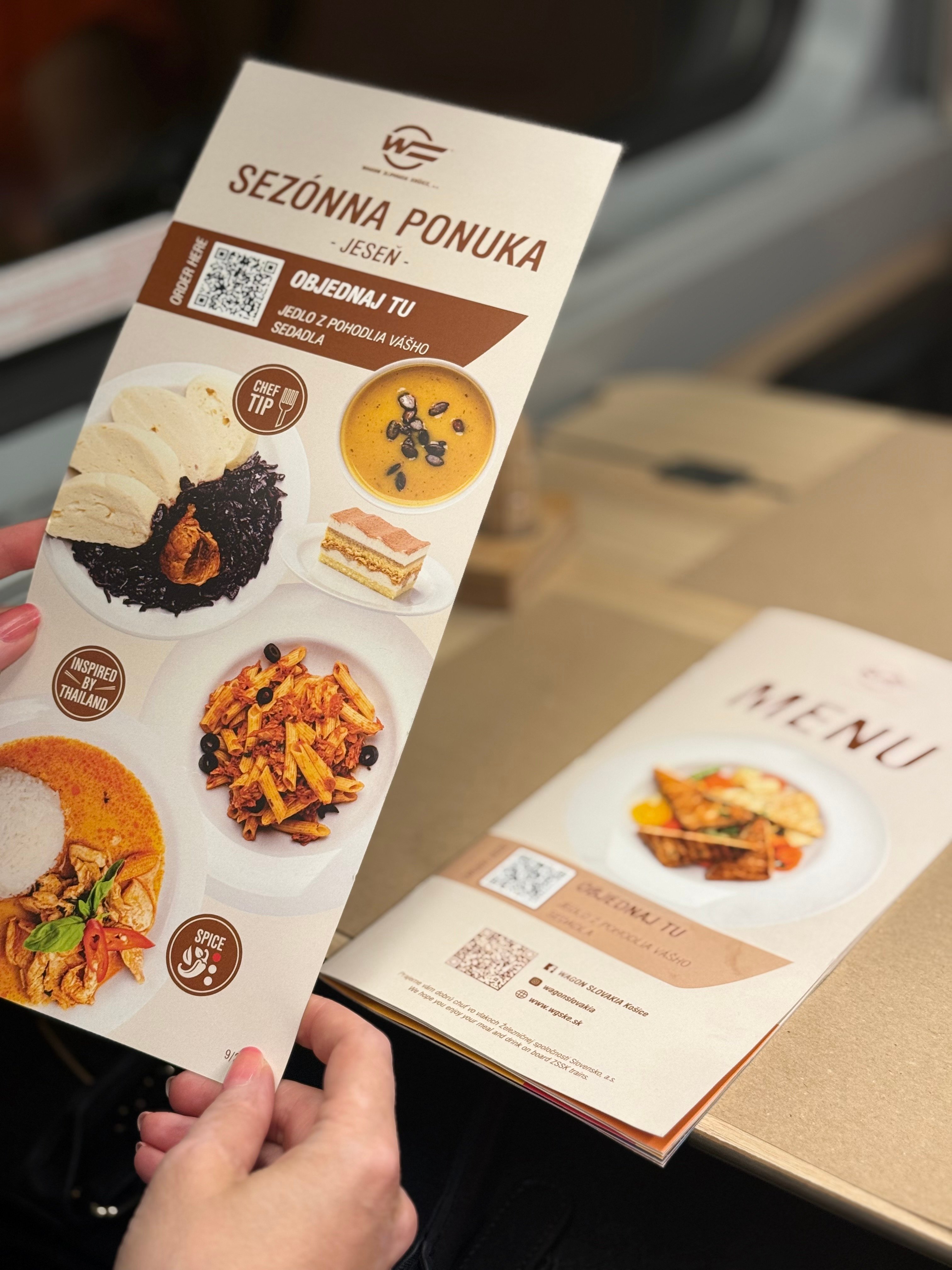 Od piatka 19. septembra je k dispozícii v reštauračných vozňoch ZSSK nová sezónna ponuka. Čaká na vás lahodný tekvicový krém s karamelizovanými semiačkami, bravčový vrabec s červenou kapustou a domácou knedľou či penne s tuniakom a olivami.