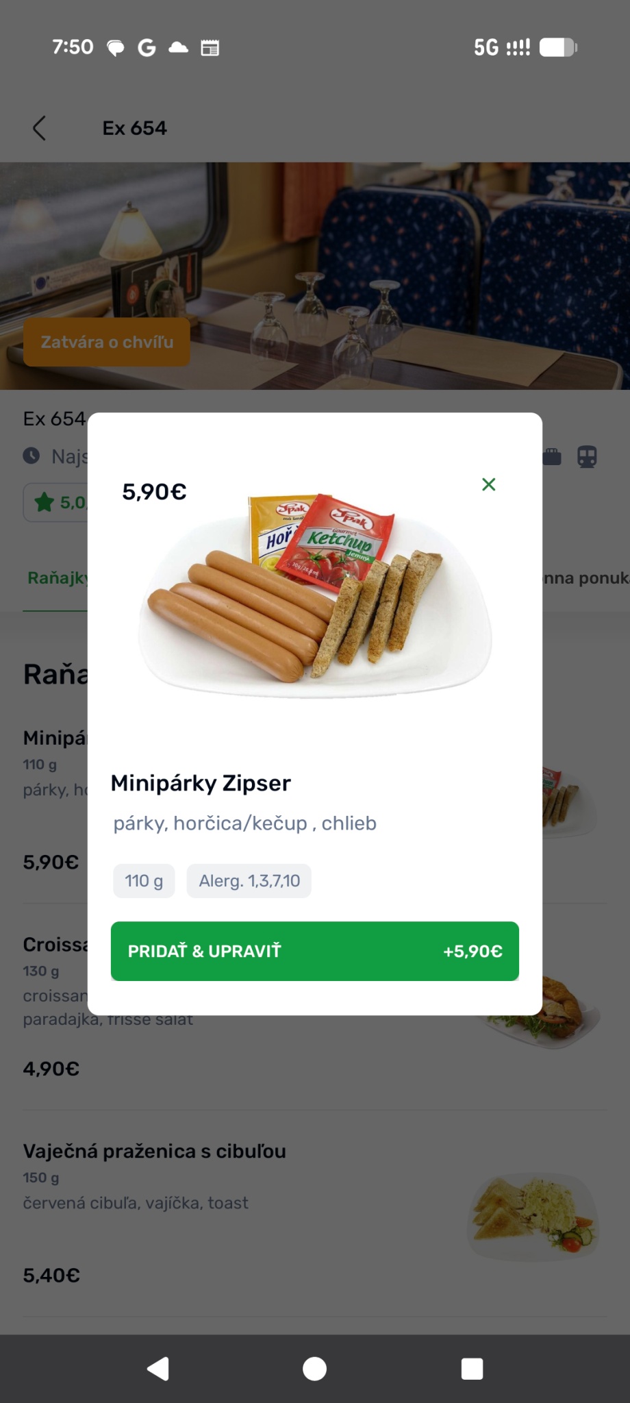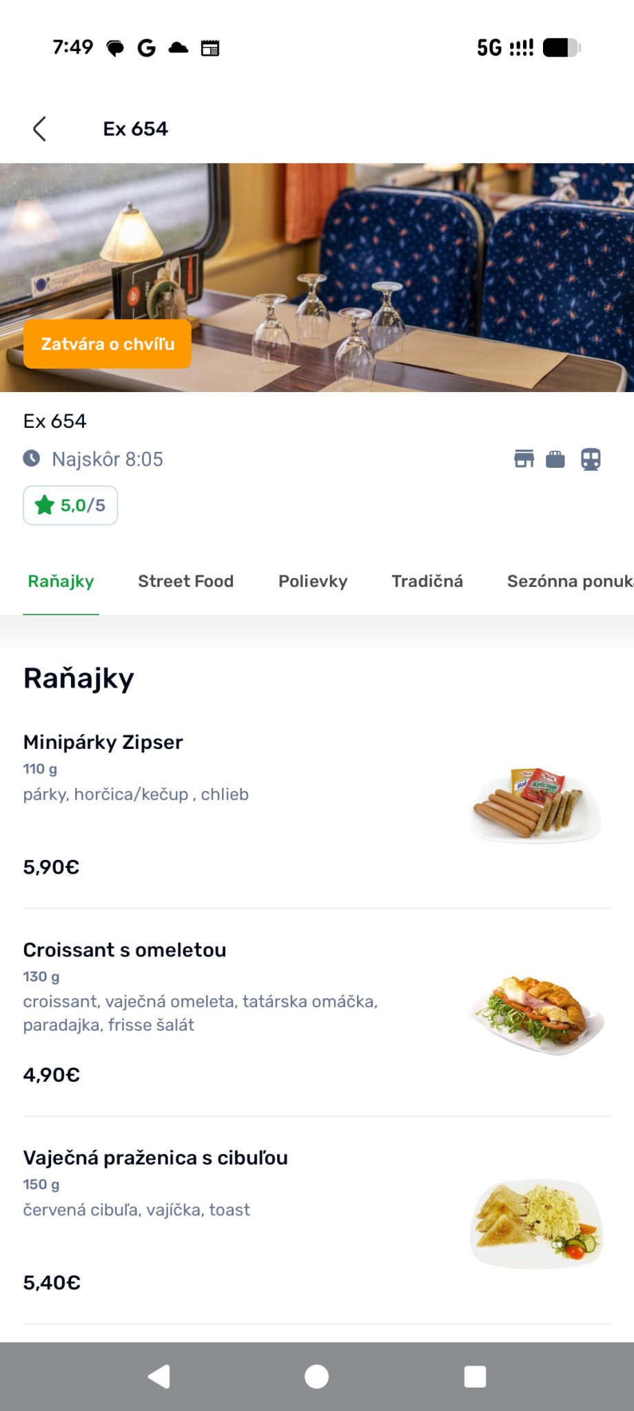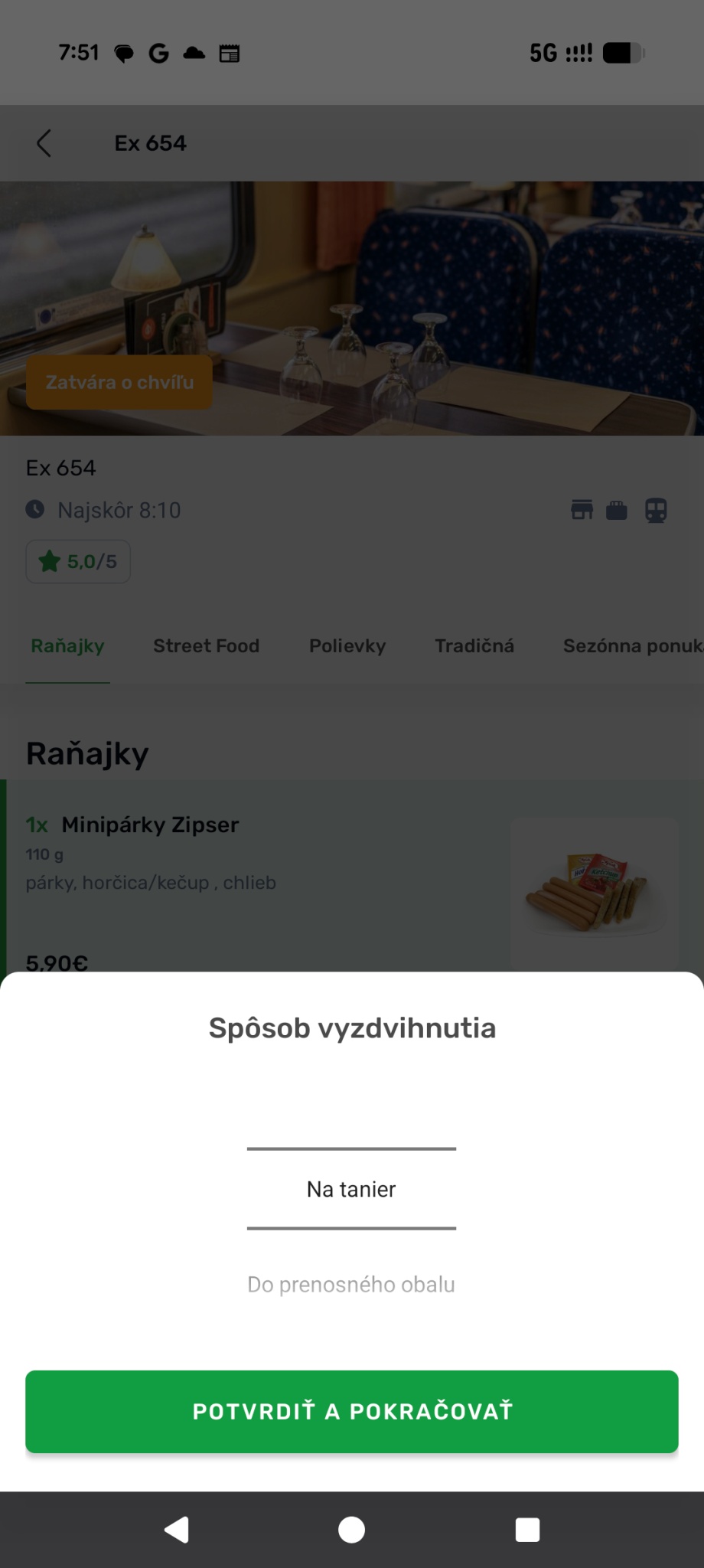 Službu som otestoval pri rannej ceste vlakom do Bratislavy, takže som si objednal raňajky