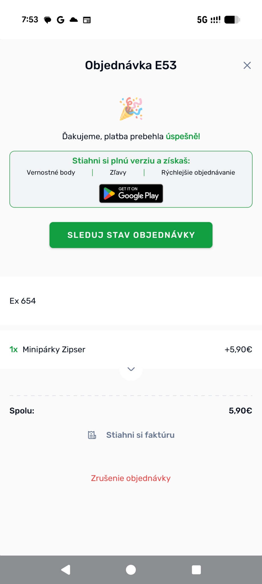 Počas pilotného viac ako mesačného obdobia vzrástol priemerný denný počet elektronických objednávok o 270 %. Priemerná hodnota objednávky dosiahla približne 11 € a najviac objednávaným jedlom bol vyprážaný syr s hranolkami.
