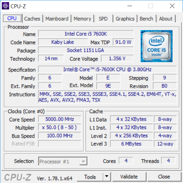 Po zarovnaní na rovnakú frekvenciu 4,2 GHz, 7600K stačí na plnohodnotný život napájanie nižšie o 0,15 V, čo v praxi znamená úsporu z 86 na 68 W. Napriek výborným výsledkom tieto konkrétne čísla berte s rezervou a radšej počítajte s trochu slabšími. Aj čipy Skylake v čase uvedenia dosahovali lepšie výsledky než posledné výpredajové kusy. A iný nemáme ani my. Po pretaktovaní stabilných 4,5 GHz až pri 1,36 V je na 6600K naozaj bieda. Oproti tomu lepší z dvojice našich 7600K pokoril psychologickú hranicu 5 GHz pri stabilnom fungovaní s napätím 1,39 V. To však už požaduje výkonné chladenie, v praxi sa ukázalo ako zaujímavejší kompromis prevádzkovanie procesora na 4,9 GHz (1,31 V). S jemnejším ladením cez BCLK by zvládol ešte o nejaký ten megahertz viac.