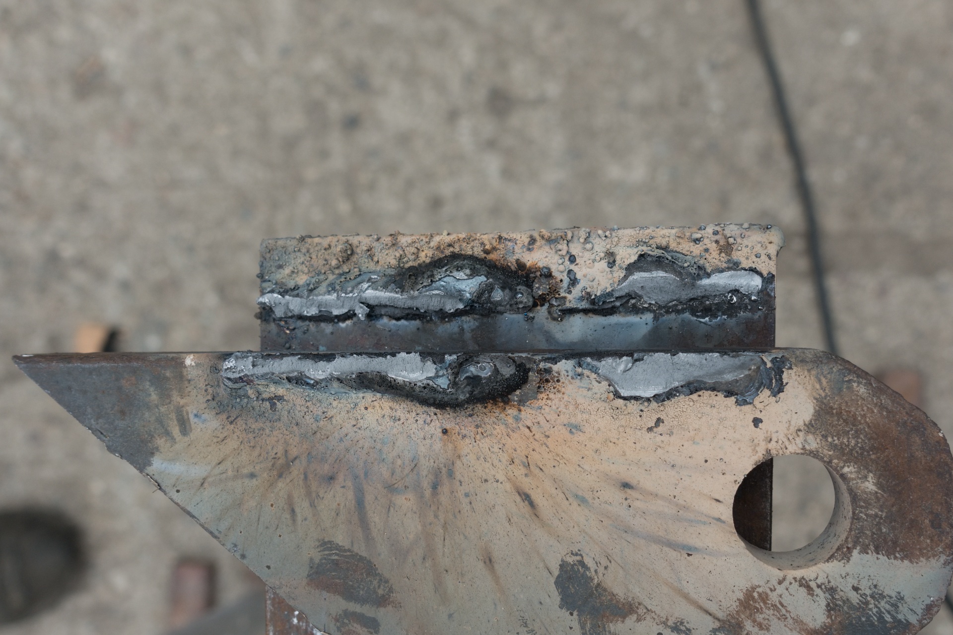 Preskúmali sme aj pevnosť zvaru, presnejšie či je prevarený koreň zvaru, Zvar 6 mm hrubého mateiálu sme veľkým kladivom odbili. K lomu došlo v strede zvaru, čo naznačuje že "prevarenie" koreňa zvaru bolo kvalitné.