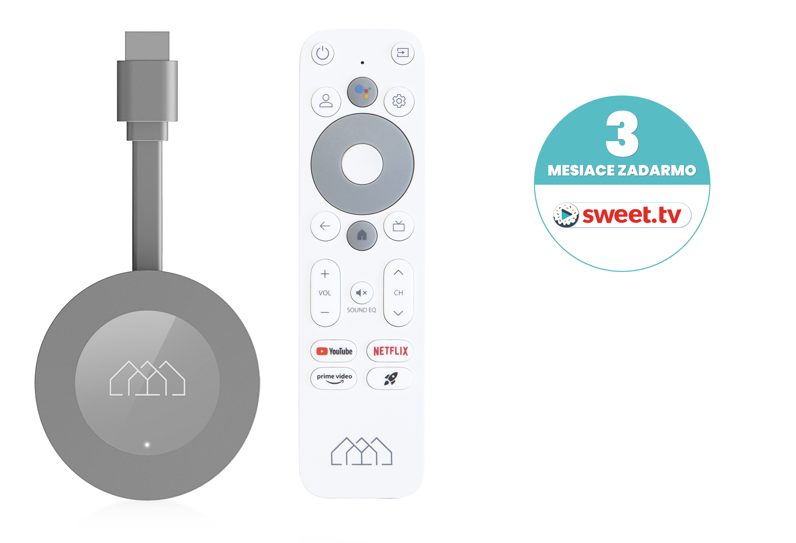 Homatics Dongle G 4K Google TV je kompaktné multimediálne zariadenie s certifikátom Google a systémom Google TV, ktoré z bežného televízora či monitora urobí výkonné smart TV. Ponúka plynulé prehrávanie 4K obsahu, moderný procesor, Wi-Fi aj stabilné káblové pripojenie cez eternet. Podporuje Chromecast, hlasové ovládanie cez Google Asistenta a streamovacie služby ako Netflix, YouTube, HBO Max, Disney+, ale aj živé vysielanie programov cez Skylink, Sweet.TV, Antik TV, Magio TV a ďalšie. Jednoduché ovládanie zabezpečí prehľadné prostredie a diaľkový ovládač s mikrofónom. Bonus predstavuje ponuka Sweet.tv na 3 mesiace v hodnote 38,70 eura zadarmo.