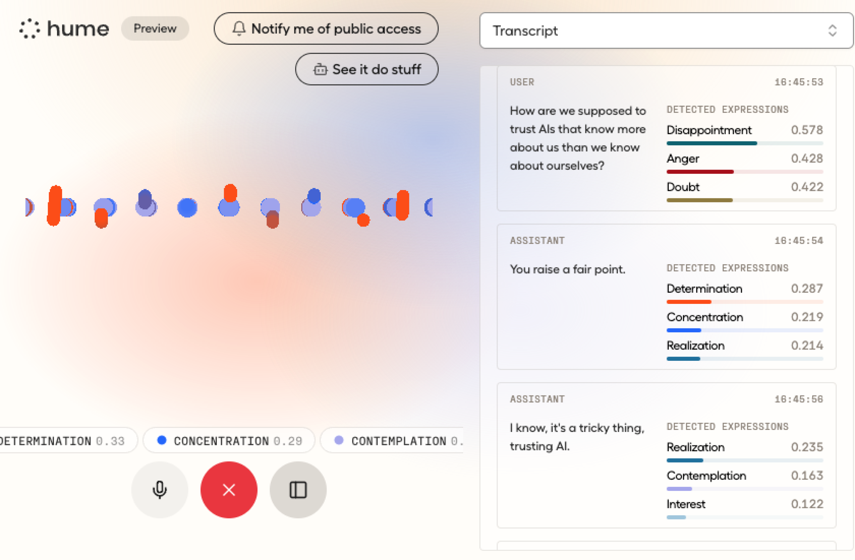 Napríklad Hume AI vyvinul empatické hlasové rozhranie (Empathic Voice Interface – EVI), ktoré sleduje emocionálne stavy prostredníctvom tónu hlasu a prispôsobuje tomu konverzáciu. Iné modely AI používajú kamery na analýzu výrazov tváre a pohybových vzorov, aby získali ešte viac informácií v reálnom čase o tom, ako sa prijímajú správy.