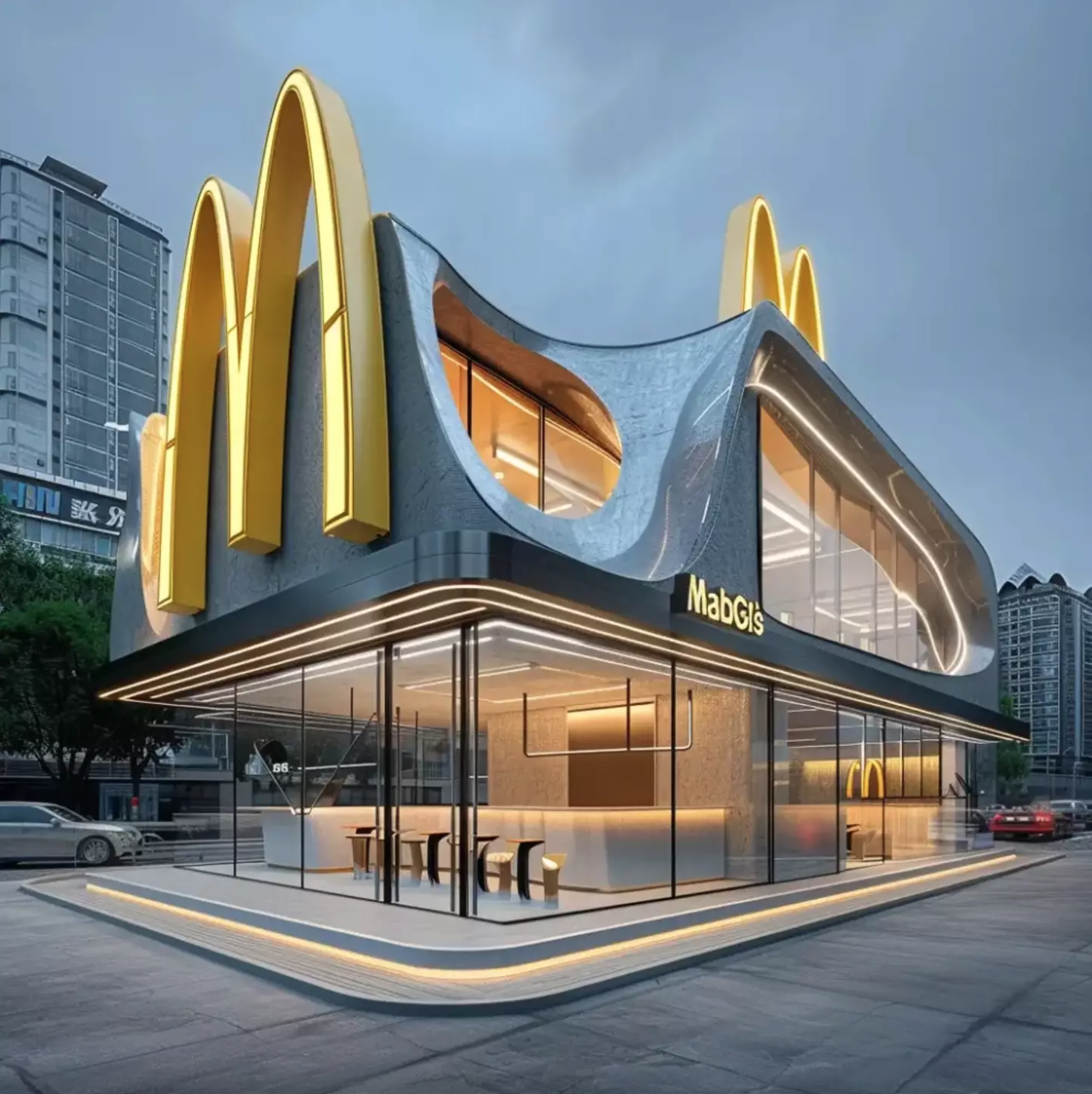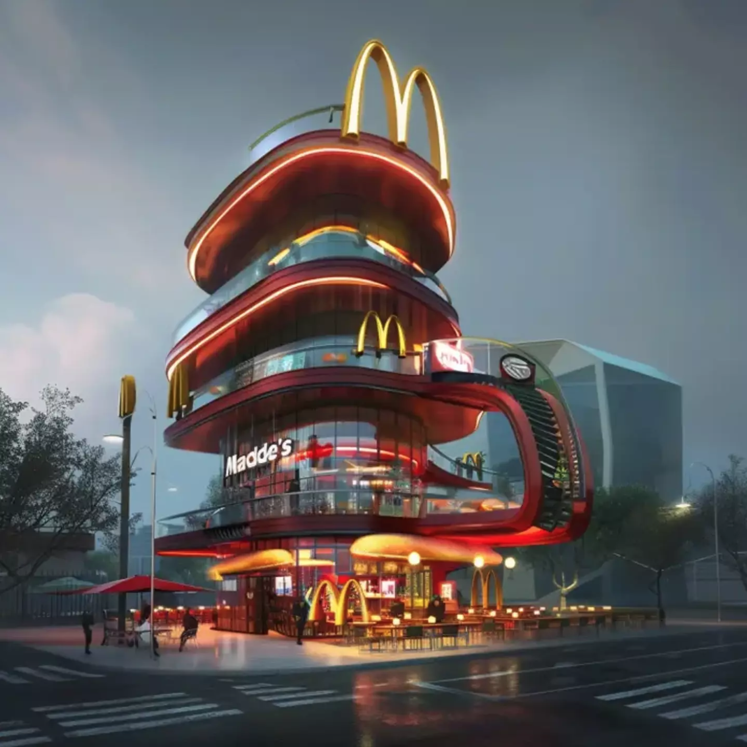 Dizajn nad jedálenským kútom je mimoriadne jedinečný a nevšedný a AI zmenila aj názov reštaurácie na MabGi's. Obrázky pripomínajú reštauráciu McDonald's, ktorú by ste mohli nájsť v Paríži aj v Tokiu. Zatiaľ čo okolie môže niekedy pôsobiť nudne a pochmúrne, interiér reštaurácie MabGi's je štýlový a pripomína hotelovú halu. Ikonické zlaté oblúky sú na viditeľnom mieste.