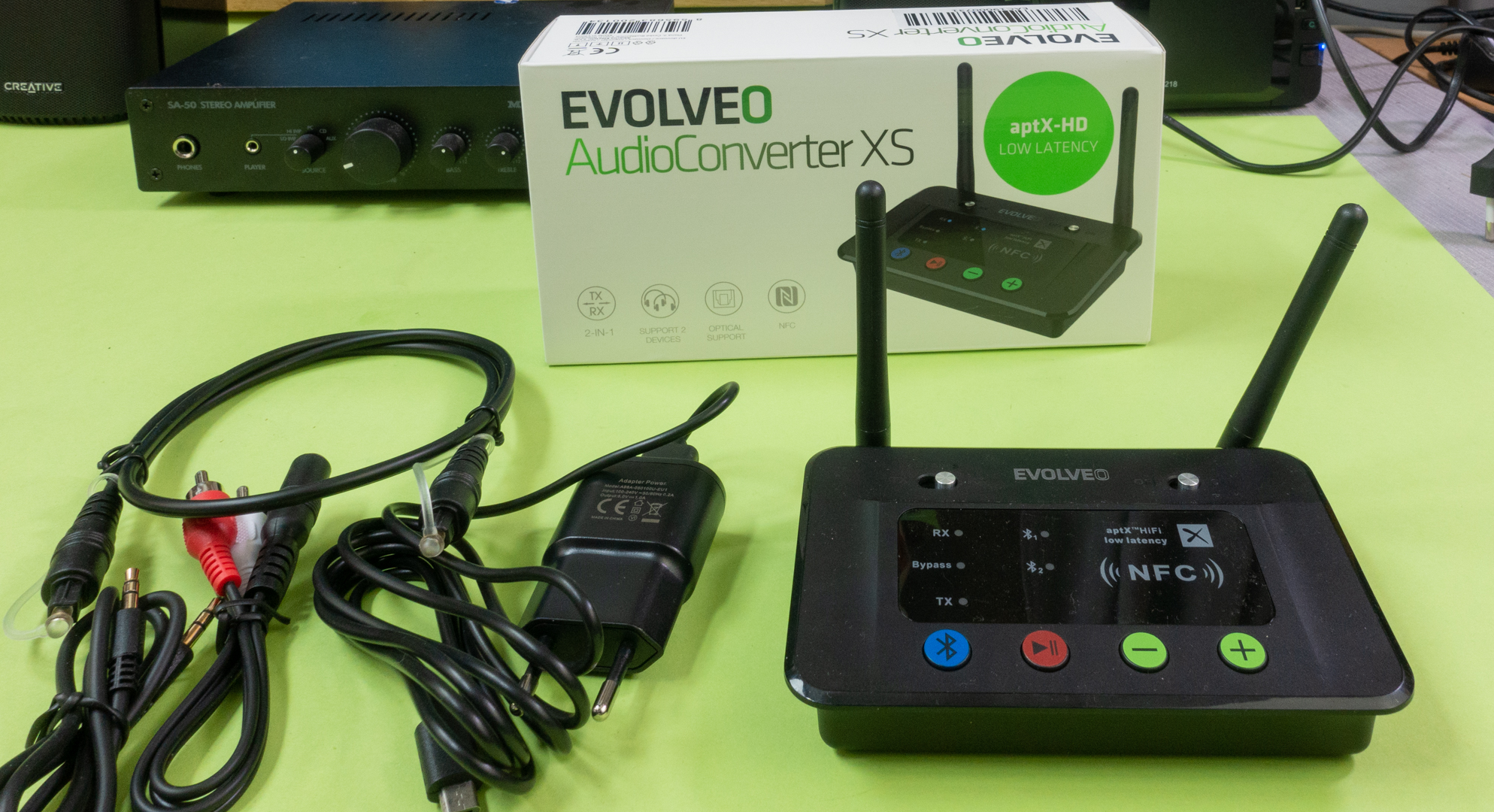 Dostať zvuk z digitálneho zdroja údajov do analógového reťazca, alebo pripojiť sa zo smartfónu bez konektora na slúchadlá k stereo systému bez možnosti bluetooth pripojenia, či pripojiť zvuk z optického výstupu s konektorom TOSLING (optický S/PDIF) k zosilňovaču bez optického vstupu... to sú len niektoré zo scenárov, ktoré rieši nový audio prevodník EVOLVEO AudioConverter XS. Umožňuje drôtový, alebo bezdrôtový prenos audiosignálu z ľubovoľného zariadenia do vybraného audio zariadenia. Napríklad zo smartfónu, alebo televízora do stereo systému so zosilňovačom a reproduktormi. Prenos je možný drôtovo, pomocou prepojovacích káblov, opticky, alebo bezdrôtovo cez Bluetooth pripojenie. Na párovanie sa dá použiť NFC.