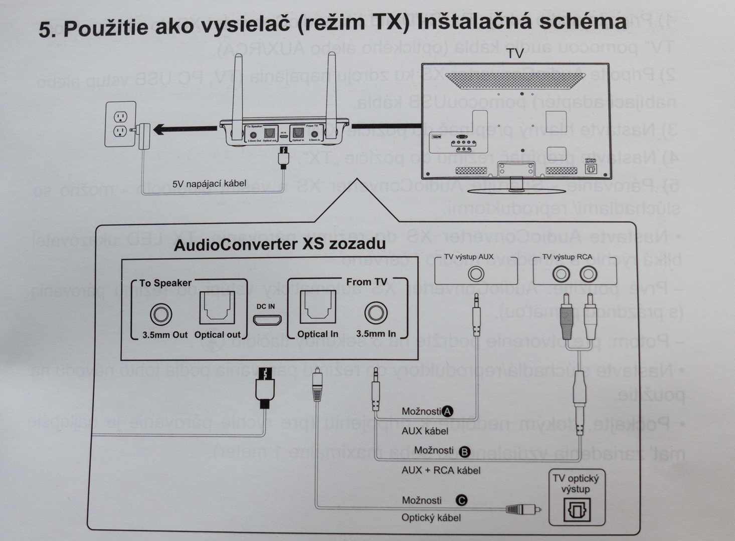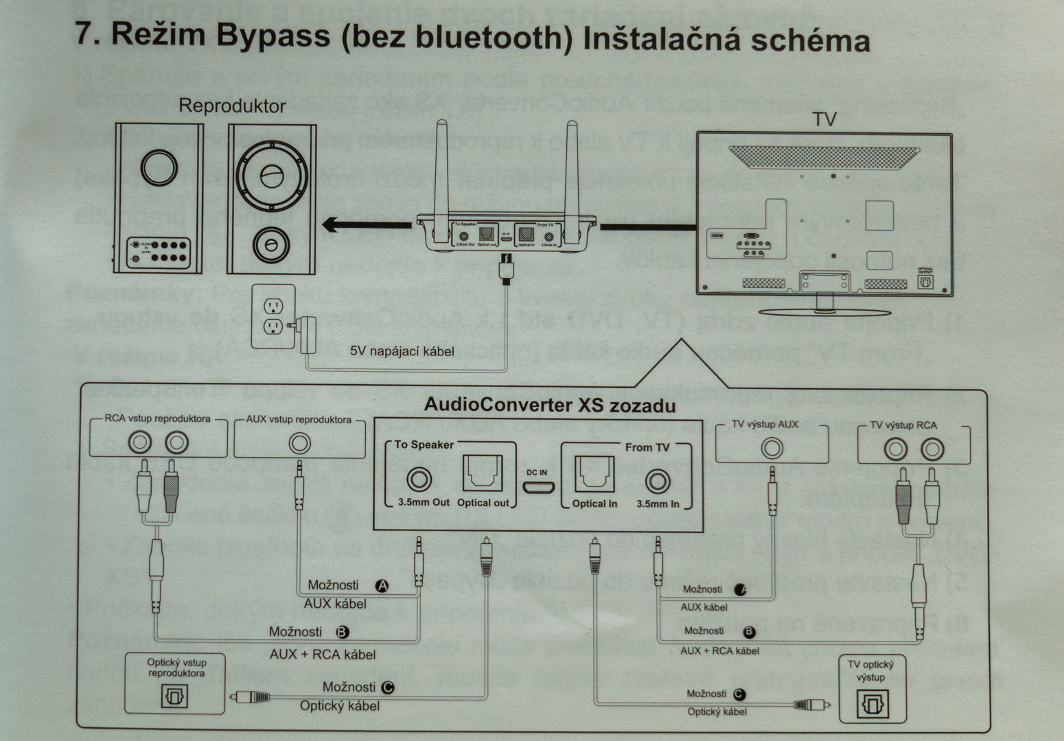 - Optický/Analógový kábel -> 2× Bluetooth zariadenie (24bit skrz S/PDIF)