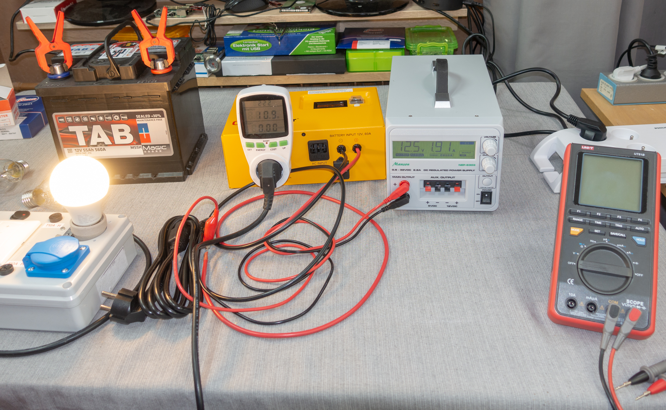 Ak je k dispozícii sieťové napájanie, batéria sa dobíja a pripojené zariadenie je napájané priamo zo siete. Pri nabíjaní batérie sa zdroj chladí ventilátorom. Nie je príliš hlučný, no napriek tomu odporúčam používať tento zdroj skôr v technologických, než v obytných priestoroch. Po výpadku siete sa začne pripojené zariadenie napájať z batérie. Prepnutie trvá približne pol sekundy. Bez záťaže odoberá menič približne 15 W.