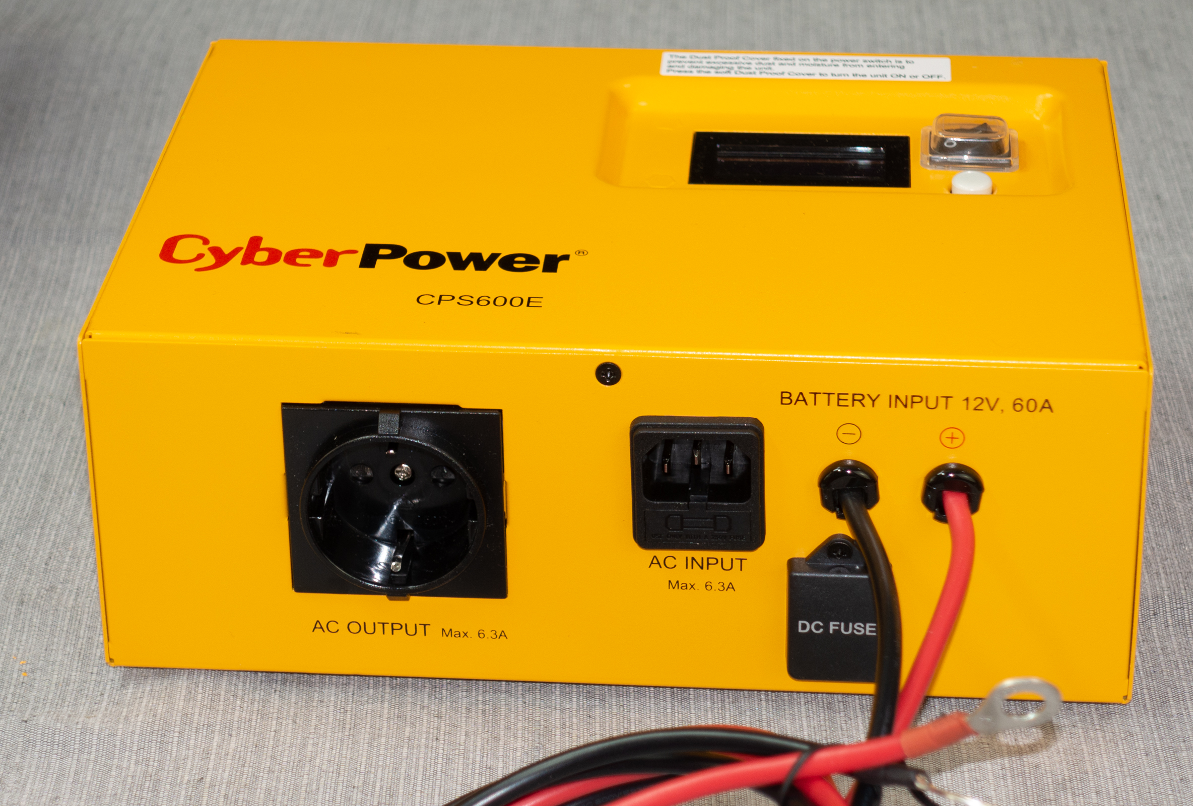 To, že CyberPower CPS600E-DE obsahuje len menič a batéria sa pripája externe, hodnotím ako výhodu, pretože môžete použiť také olovené batérie, aké máte k dispocícii s potrebnou kapacitou na predpokladaný scenár použitia.