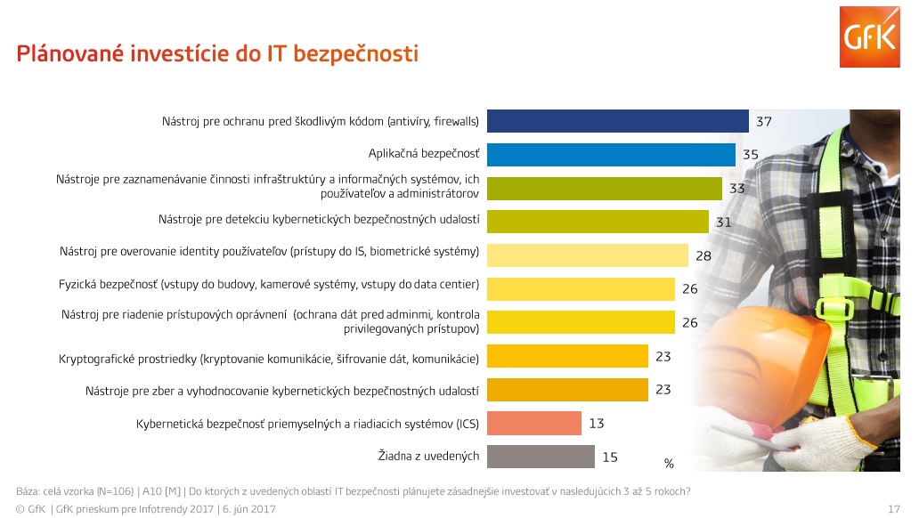 Kým prvú kategóriu nástrojov využíva podľa prieskumu agentúry GfK 93 % firiem, tú druhú, do ktorej patria napríklad nástroje pre šifrovanie dát a prediktívny monitoring počítačových sietí, iba necelé dve pätiny (38 %) podnikov.