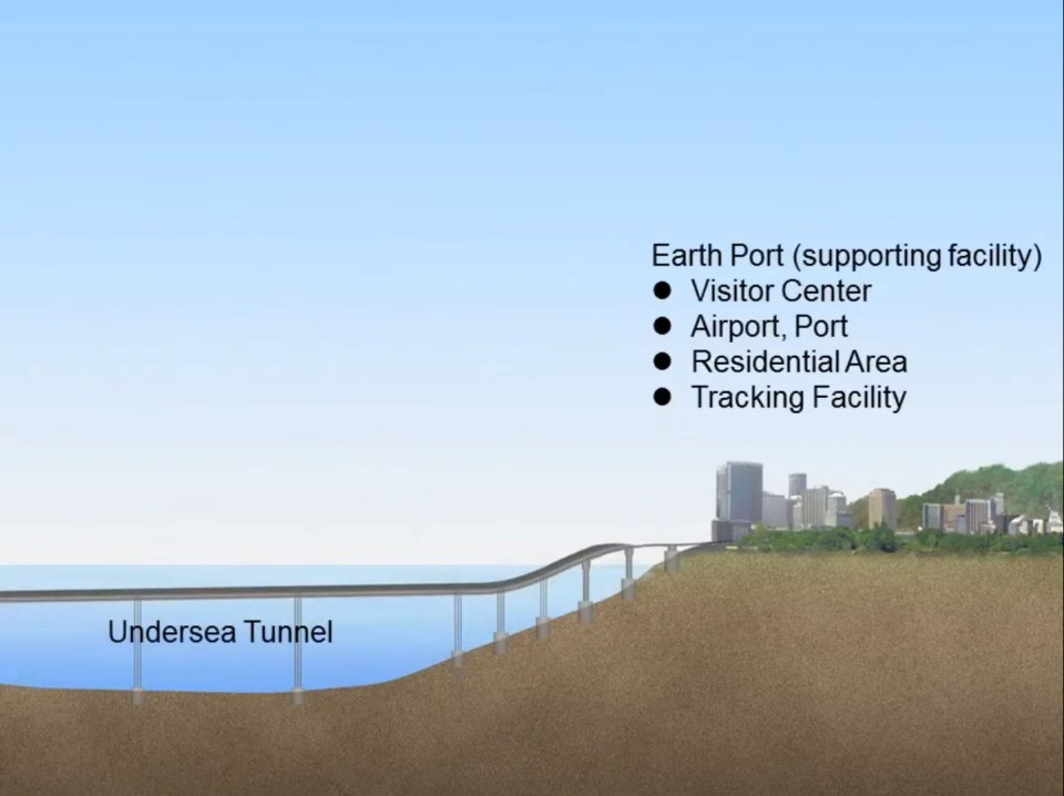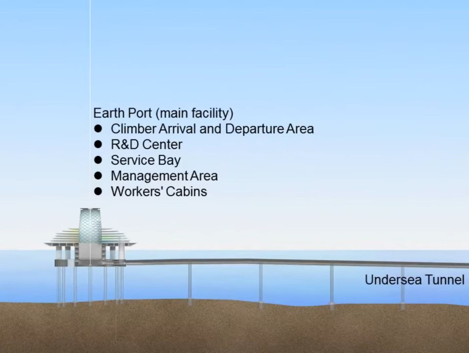 Prístup k pozemskému portu by zabezpečoval podmorský tunel. Elektrická energia vyrobená z vesmírneho solárneho systému v blízkosti stanice na geostacionárnej dráhe by sa mohla prenášať späť na Zem. Firma odhaduje, že výstavba bude dokončená do roku 2050. Systém bude zložený z 96 000-kilometrového kábla z uhlíkových nanorúrok, plávajúceho pozemského portu s priemerom 400 metrov a 12 500-tonového protizávažia.