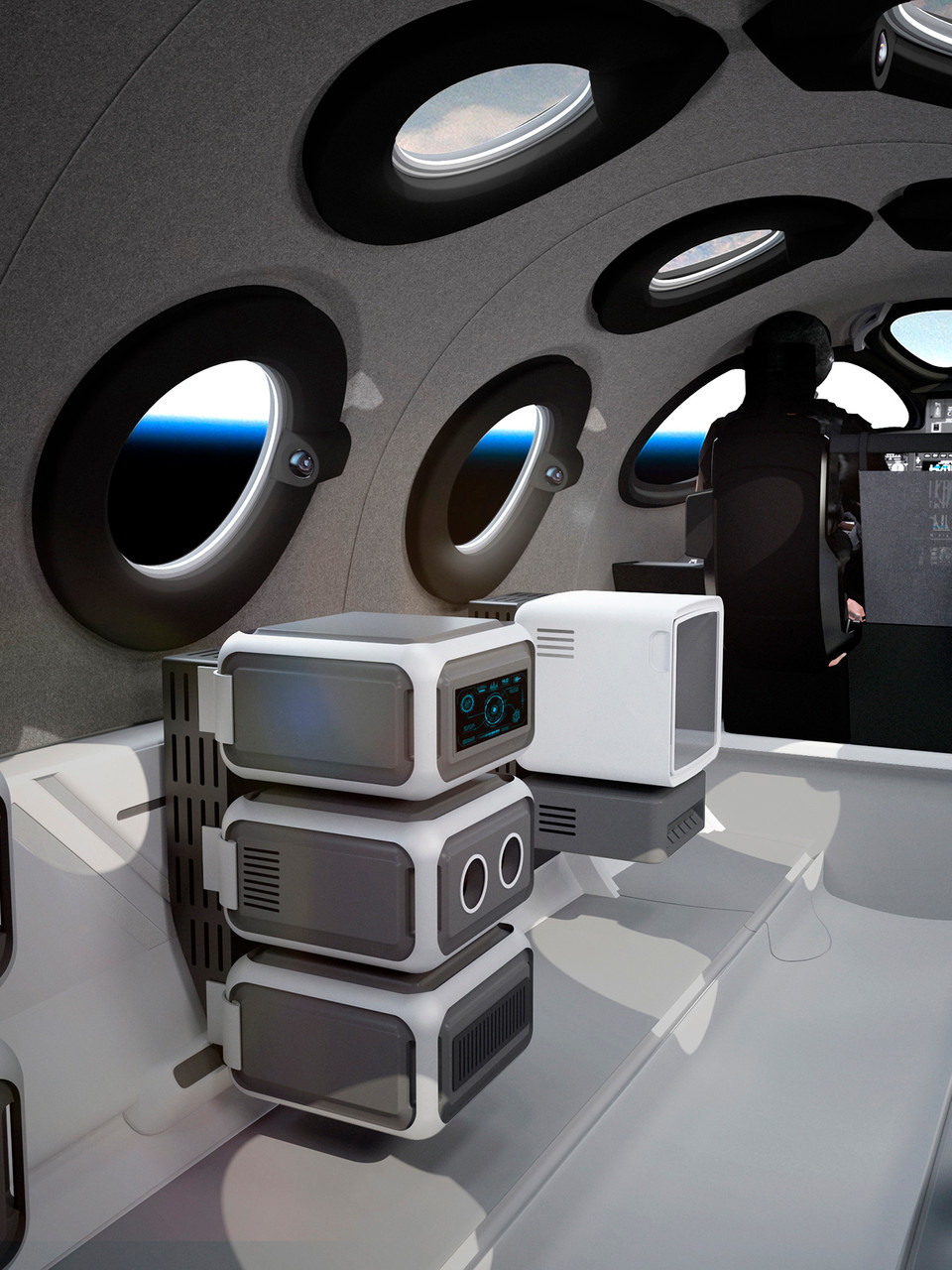Keď loď dosiahne spodný okraj vesmíru, cestujúci na palube budú môcť opustiť svoje sedadlá a vznášať sa v kabíne. Všetky sedadlá sú prispôsobené, navrhnuté tak, aby sa v ňom danej osobe pohodlne sedelo. Každé miesto je vybavené osobnou obrazovkou, aby cestujúci mohli kedykoľvek sledovať živé letové údaje. Popri sedadlách je 12 okien, ktoré umožňujú dobrý výhľad na Zem. Spoločnosť pridala aj „náladové osvetlenie“, ktoré cestujúcich sprevádza všetkým ...