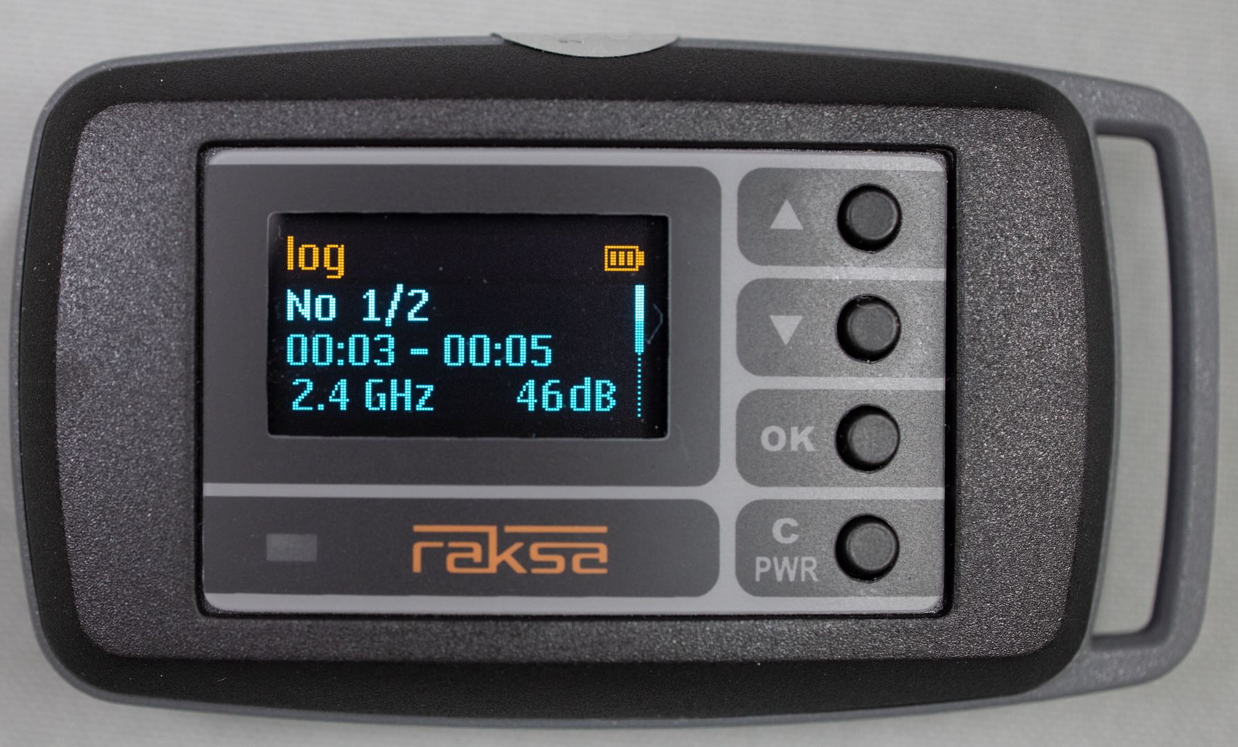Ukladanie údajov oceníte pri detekcii zariadení, ktoré nevysielajú kontinuálne, ale zaznamenané údaje spracujú, skomprimujú a vysielajú ich len občas. Detektor dokáže zaznamenať až 200 detegovaných alarmov, pričom ukladá dátum a presný čas, ako aj silu signálu. Informácie sa zobrazujú na farebnom displeji OLED s rozlíšením 128 × 64 pixelov.