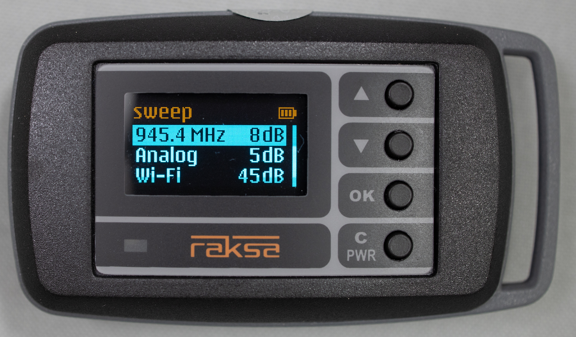 Režim Sweep čiže rozmietanie po aktivovaní zobrazí všetky zdroje rádiového vysielania v sledovanom priestore vrátane ich aktuálnej intenzity signálu. Ak je zdrojov signálu viac, než dokáže displej zobraziť naraz, periodicky prepína stránky so zoznamom vysielačov.
