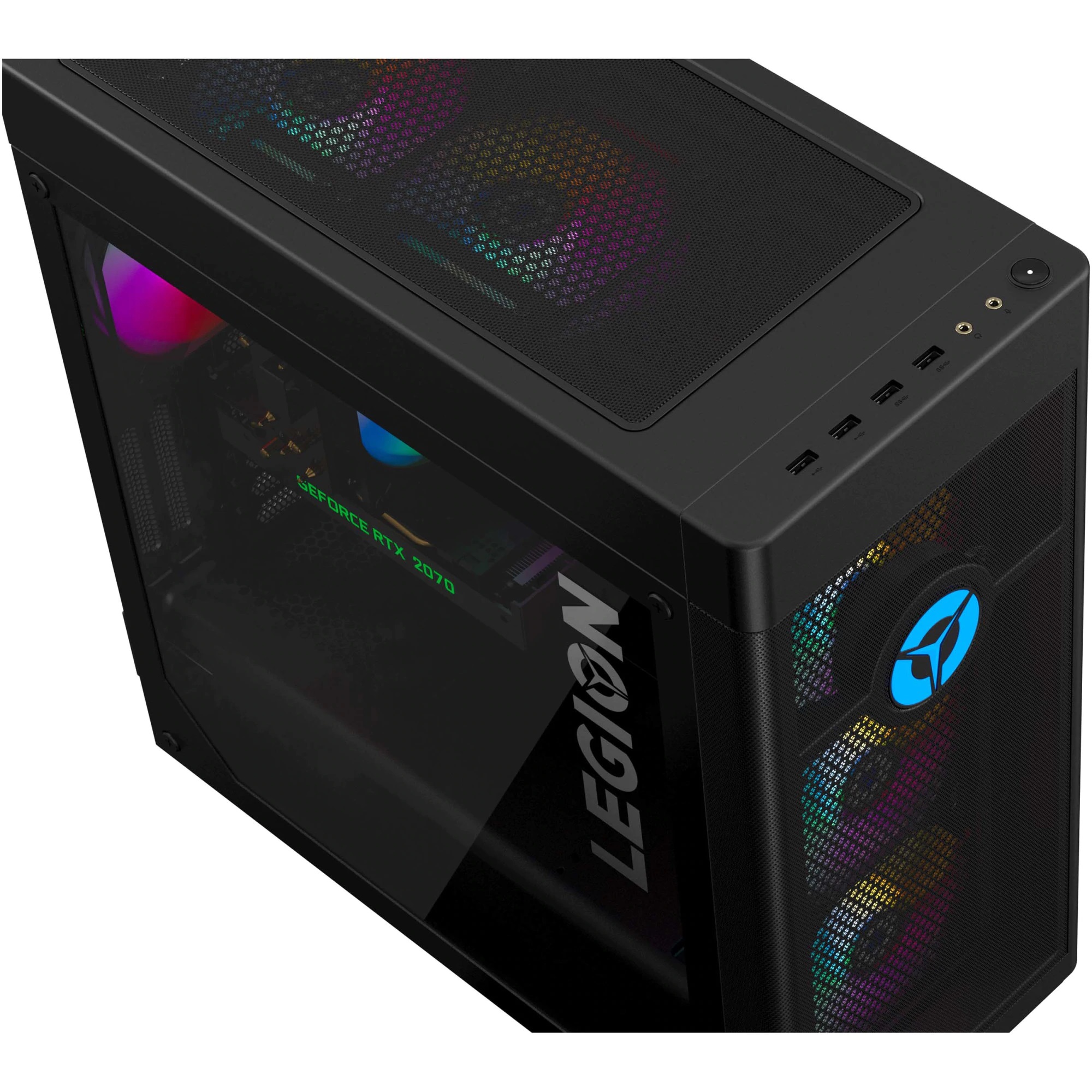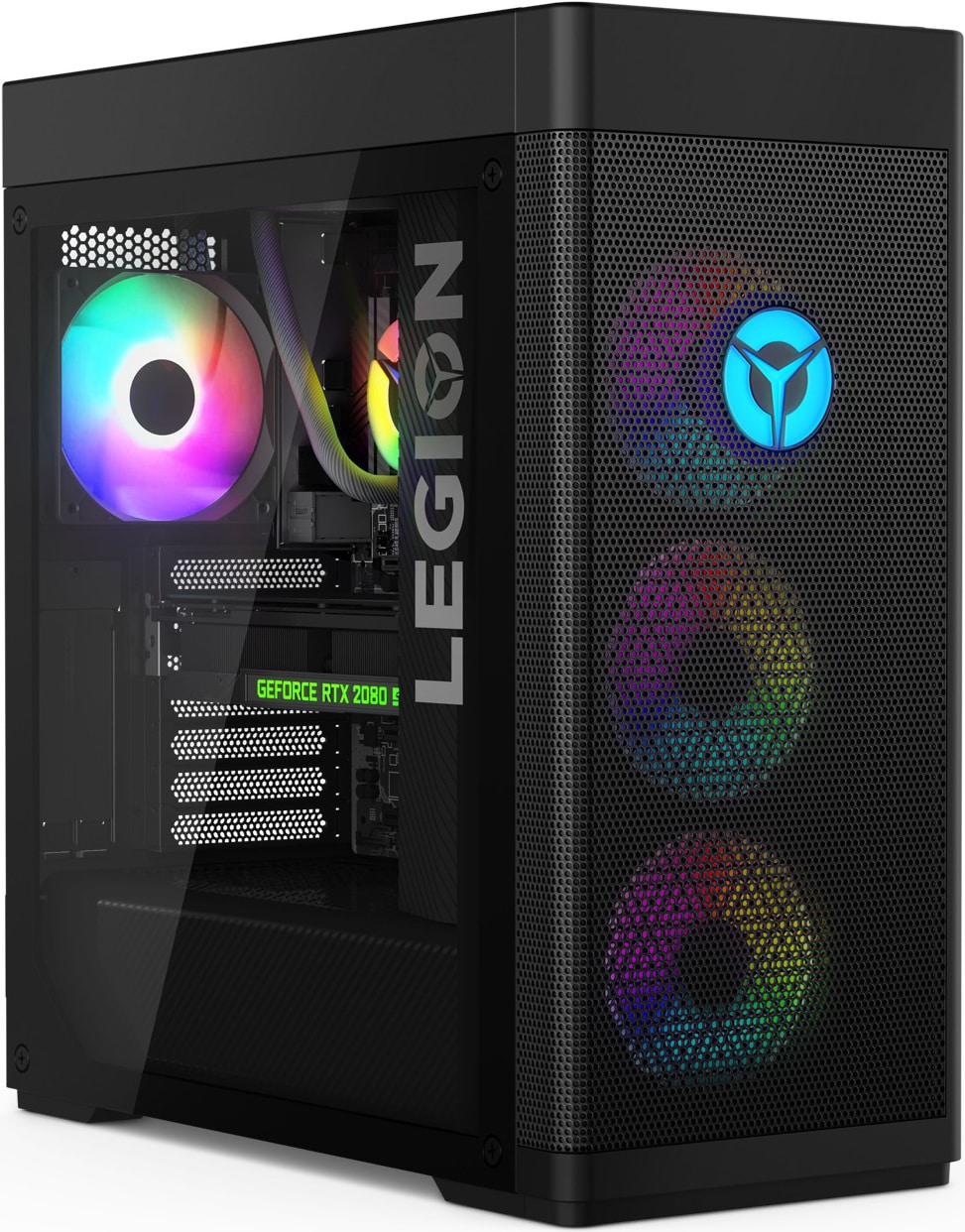 Prvý dojem pri pohľade na „tower“ konštrukciu tohto výkonného herného počítača je elegancia, priestrannosť a vzdušnosť. Povrchová úprava je v odtieni čiernej s marketingovým názvom Raven. Sklenená stena umožňuje nahliadnuť dovnútra, takže zreteľne vidíte zelené podsvietenia grafickej karty GeForce RTX 2880 Super a chladiaci systém. Vo veľkej skrini s vnútorným objemom 34 l je dostatok miesta na voľné prúdenie vzduchu. Šesť veľkých ventilátorov vďaka atraktívnemu farebnému podsvieteniu určite neprehliadnete. Tri ventilátory na prednej strane vháňajú vzduch do vnútra skrine a rovnaký počet ventilátorov ho zo skrine vyfukuje. Nakoľko teplý vzduch stúpa nahor, dva ventilátory sú v hornej časti, takže ohriaty vzduch vyfukujú nahor a tretí ventilátor je vzadu, umiestnený tak, aby zo skrine vyfukoval ohriaty vzduch z chladiča procesora. Podľa toho ako budete počítač aktuálne využívať si v aplikácii Lenovo Vantage môžete nastaviť jeden z troch režimov chladenia. Pri hrách určite uprednostníte maximálny výkon, pri práci, či multimediálnej zábave zas čo najtichší chod ventilátorov. Pri editovaní videa som využil tretiu možnosť - zlatú strednú cestu, čiže kompromis prinášajúci vysoký výkon pri akceptovateľnej hlučnosti ventilátorov chladiaceho systému. V aplikácii Lenovo Vantage si môžete prispôsobiť aj efekty podsvietenia, prípadne ďalšie parametre.