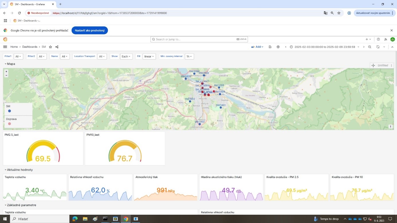 Obr. 2 Vizualizácia dát zo senzorickej siete projektu REMoT